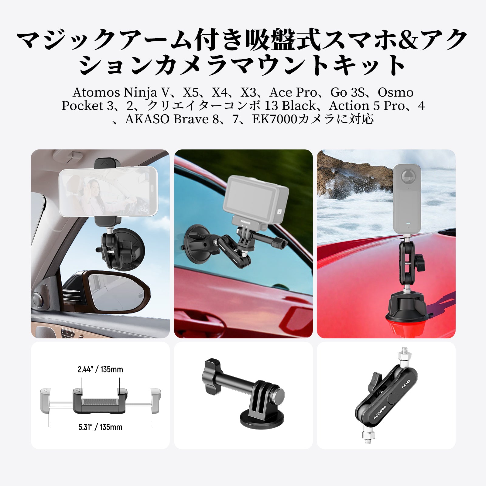 - 【1/4"ネジ&3本爪アダプター】カーマウントスタンドアクセサリーとアタッチメントキットは、Atomos Ninja V、X5、X4、X3、Ace Pro、Go 3S、Osmo Pocket 3、2、クリエイターコンボ、Hero 13、12、11、10、9 Black、Action 5 Pro、4、Brave 8、7、EK7000カメラに対応しています。