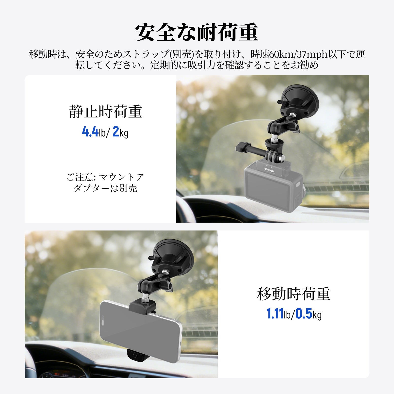 - 【素早く安全な取り付け】吸盤式スマホ&カメラマウントは、ボタン一つで簡単にフロントガラスにしっかりと固定できます。安定したVlog、動画撮影、ナビゲーション、ビデオコールに最適な機器です。