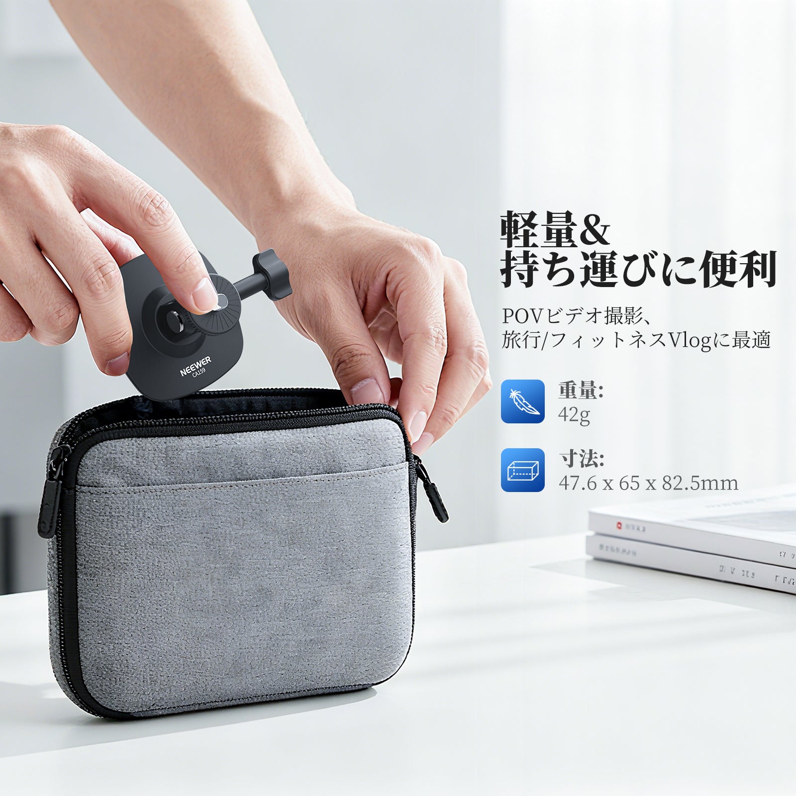 【軽量&持ち運びに便利】360°カメラマウントは、重さわずか42g、サイズ47.6x65x82.5mmで、どこにでも持ち運びが簡単です。コンパクトなデザインで取り出しやすく、使いやすく、コンテンツクリエイターやインフルエンサーにとって必要なアイテムで、POV動画撮影、旅行/フィットネスVlog、屋外撮影などに最適です。