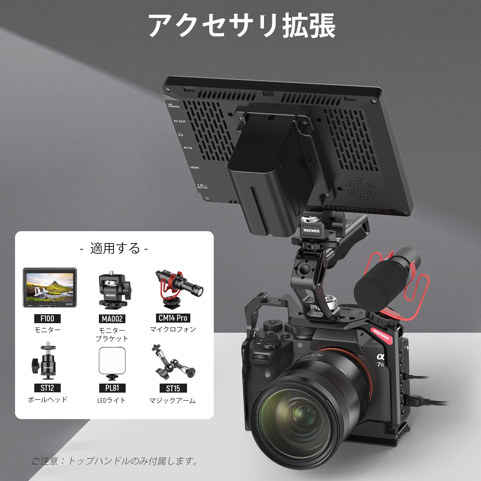 【コールドシューマウント内蔵】3つのコールドシューマウントにより、フィールドモニター、インタビューマイク、およびLEDビデオライトをトップハンドルに取り付けて、ビデオ品質を向上させることができます。