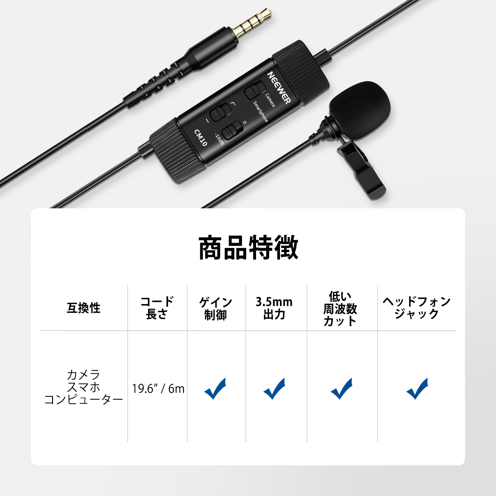 NEEWER CM10 プラグ & プレイ 3.5mm TRRS ラベリアマイク スマホ/カメラ/PC用