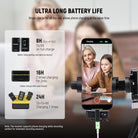 - 【カメラ用プロ無線ラベリアマイクセット】送信機(TX)2台と受信機(RX)1台が含まれています。フル充電で9時間(TX)、8時間(RX)動作し、保護充電ケースを使用してわずか1.5時間で2回充電できます。2つのマイククリップは、4ft/1.2mのケーブルが付き、軽量で、襟に固定したり、ジャケットの下に隠したりして、インタビュー、ブログ、生放送、その他の長時間の屋外音声録音に使用できます。