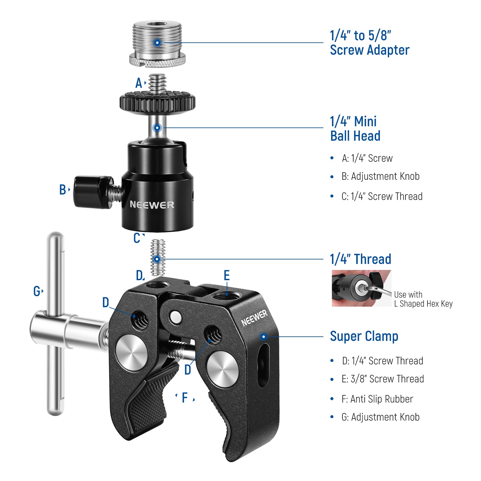 【軽量&ポータブル】小さなカニクランプの重さはわずか200gなので、ポケットに簡単に詰めて、あらゆる撮影場所に持ち運ぶことができ、屋内と屋外の両方のイベントに最適です。