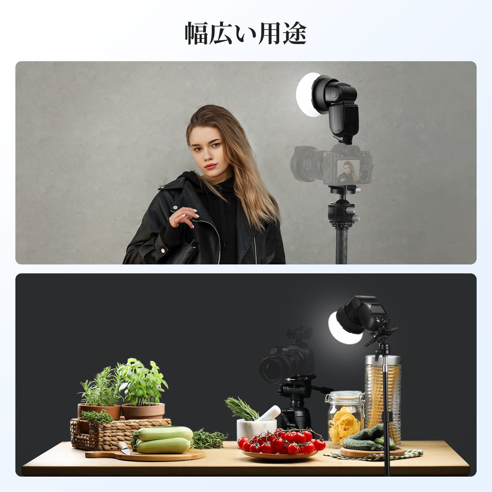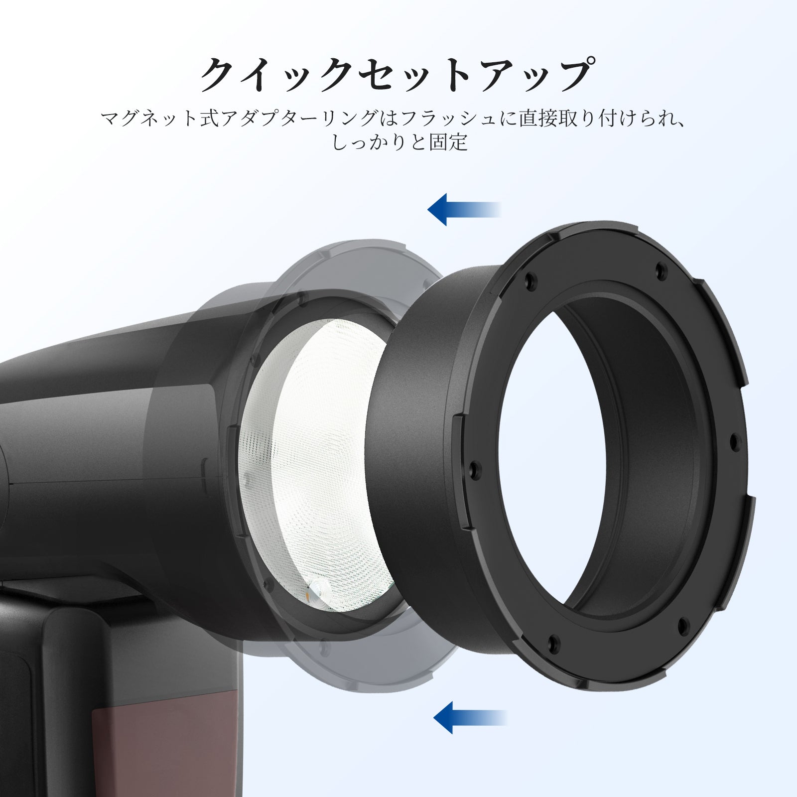 - 【クイックスナップオンアタッチメント】マグネット式アダプターリングはフラッシュに直接装着でき、しっかりと固定されます。