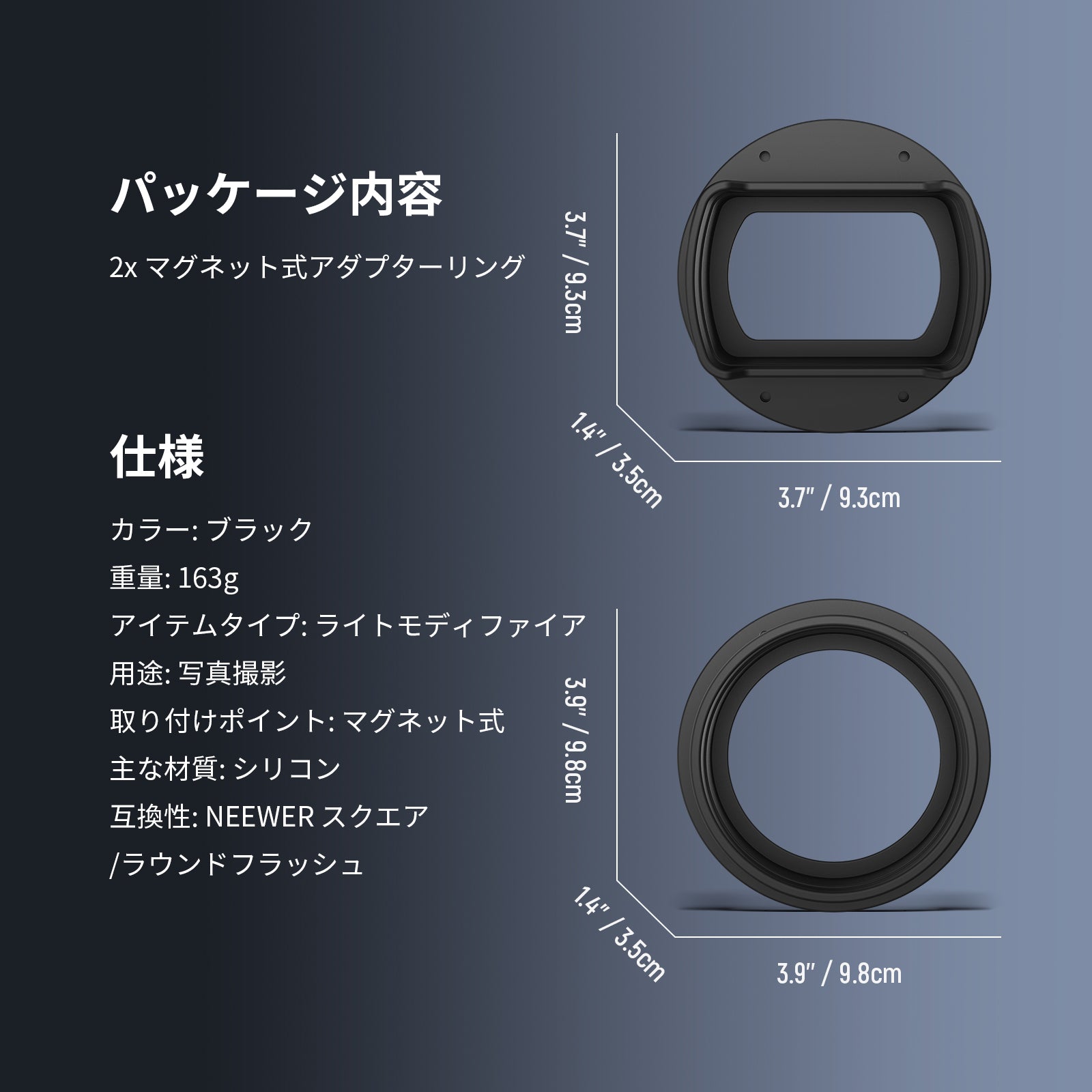 - 【スクエアフラッシュアダプターリング】マグネット式アダプターリングは、NEEWERスクエアヘッドカメラフラッシュに幅広いフラッシュアクセサリーを接続でき、クリエイティブでアーティスティックな撮影からプロなフラッシュ撮影まで、コンテンツクリエイターやインフルエンサーにとって必要なアイテムとして活躍します。