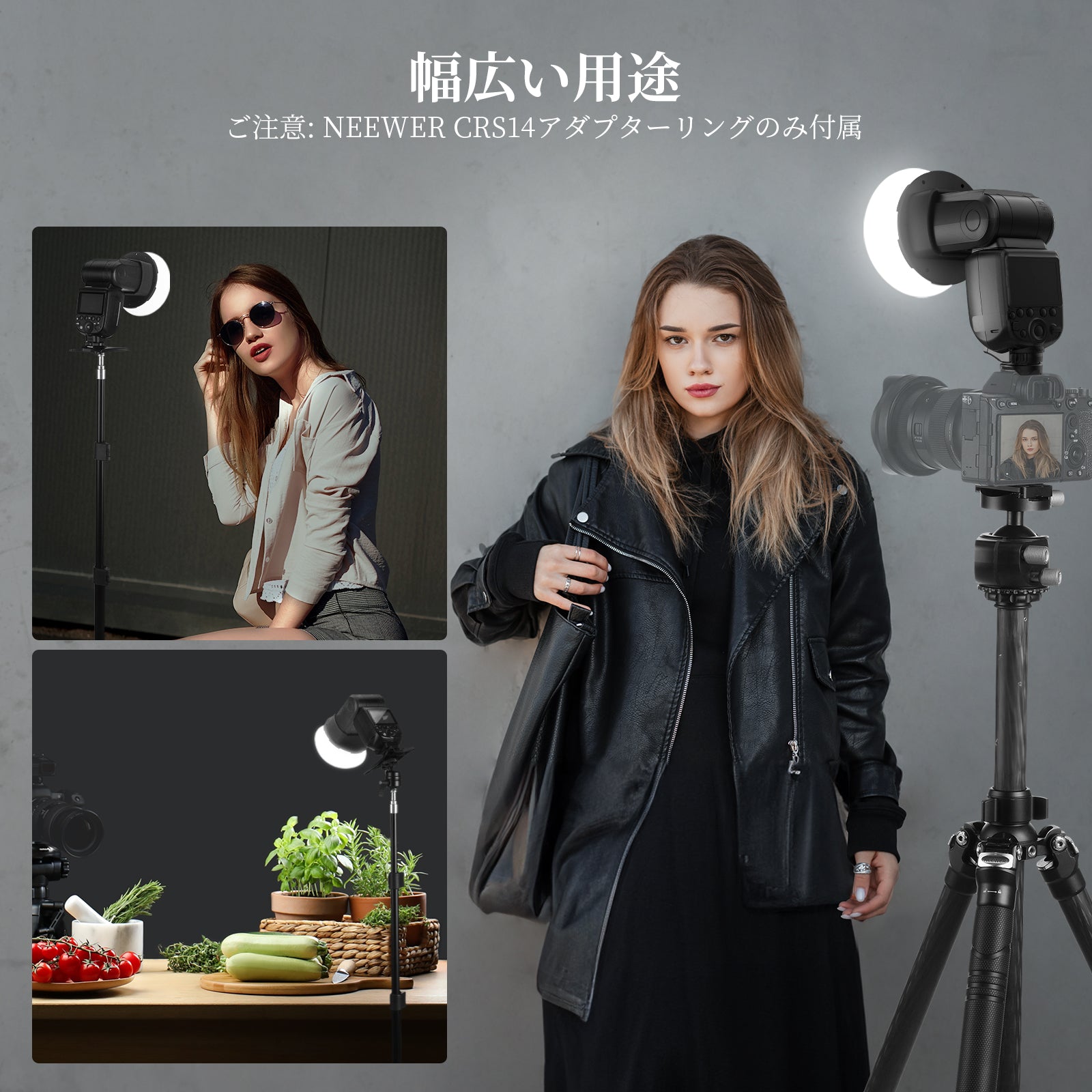 - 【ラウンドフラッシュアダプターリング】 マグネット式アダプターリングは、NEEWERラウンドヘッドカメラフラッシュに様々なフラッシュアクセサリーを接続できます。クリエイティブでアーティスティックな撮影から、プロフェッショナルなフラッシュ撮影まで、コンテンツクリエイターやインフルエンサーにとって必要なアイテムとして活躍しています。