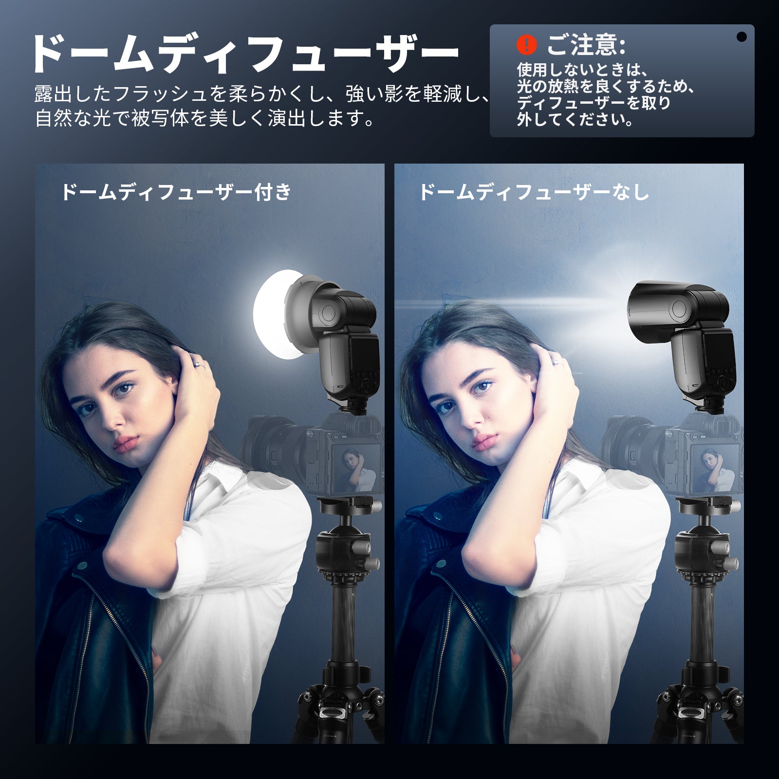 - 【拡散光出力】シリコン製ディフューザーは、強いフラッシュ光をやわらげ、不要な影を最小限に抑え、自然で美しい光を実現します。コンテンツクリエイターにとって必要なアクセサリーとして、インフルエンサーにとって必要なアイテムとして、ポートレート撮影、結婚式、商品撮影などあらゆる撮影に最適です。