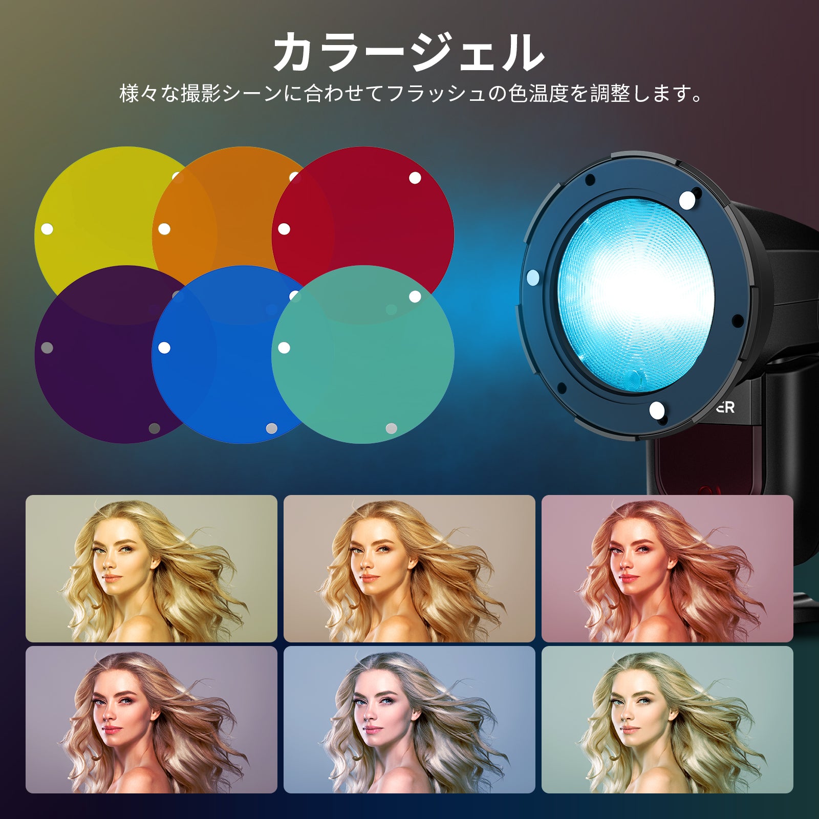 - 【創造なカラーフィルターセット】鮮やかな6色カラーフィルター(赤、オレンジ、黄、緑、青、紫)は、ダイナミックな照明オプションを提供します。ポートレート撮影、イベント、アート写真に色彩効果を加えたり、色温度を調整したり、ムードを演出したりできます。