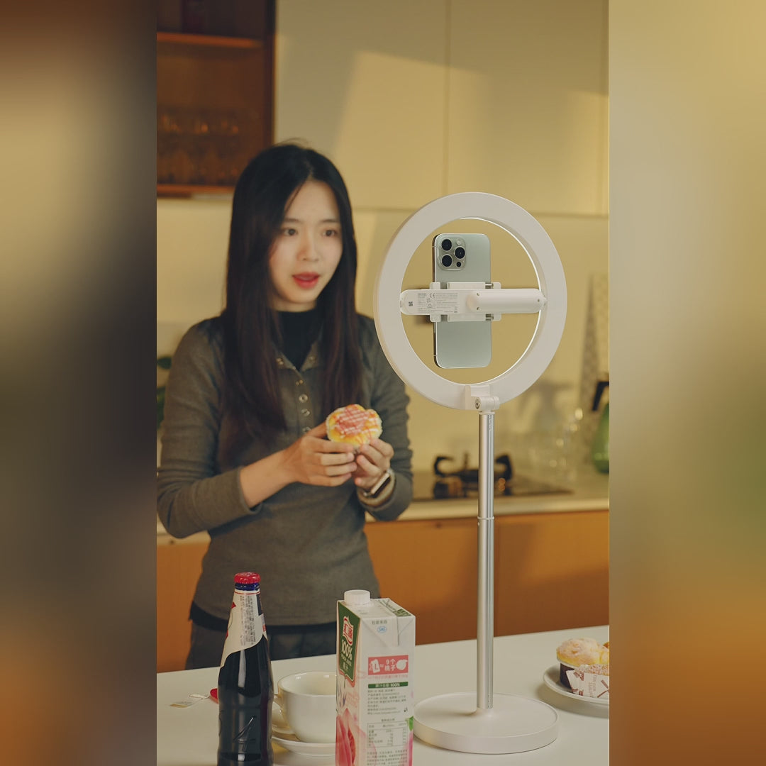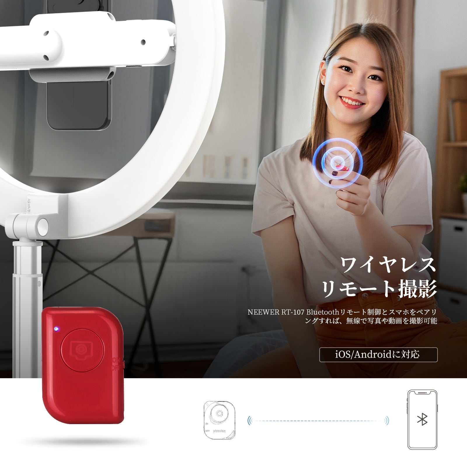 【スマホ撮影に最適】自撮りリングライトは360°回転可能なユニバーサルスマホホルダーを備え、縦向きモードと横向きモードの両方で最適な画質を実現する均一で柔らかな拡散光を提供。デスククリップ式スタンドで卓上での俯瞰撮影やVlog制作に最適。iPhone 16/15 Pro Max Plusをはじめ、各種Androidスマートフォンにも対応。ワイヤレスシャッター操作用Bluetoothリモコンと配線整理に便利なケーブルクリップ2個が付属。ご使用中何かご質問がございましたら、お気軽に弊社のカスタマーサポートまでお問い合わせください。