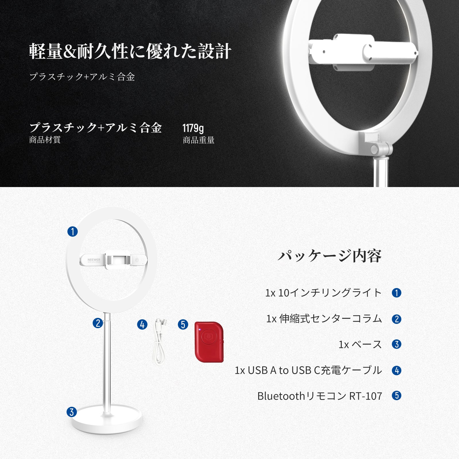 - 【NEEWER ENTRY LEVEL VERSIONシリーズ】BASICSシリーズよりさらに簡単で、シンプルさとお求めやすさを念頭に設計されており、基本的な機能とデザインに徹し、余計な機能や素材は一切ありません。最も基本的な機能だけを求める初心者に最適です。