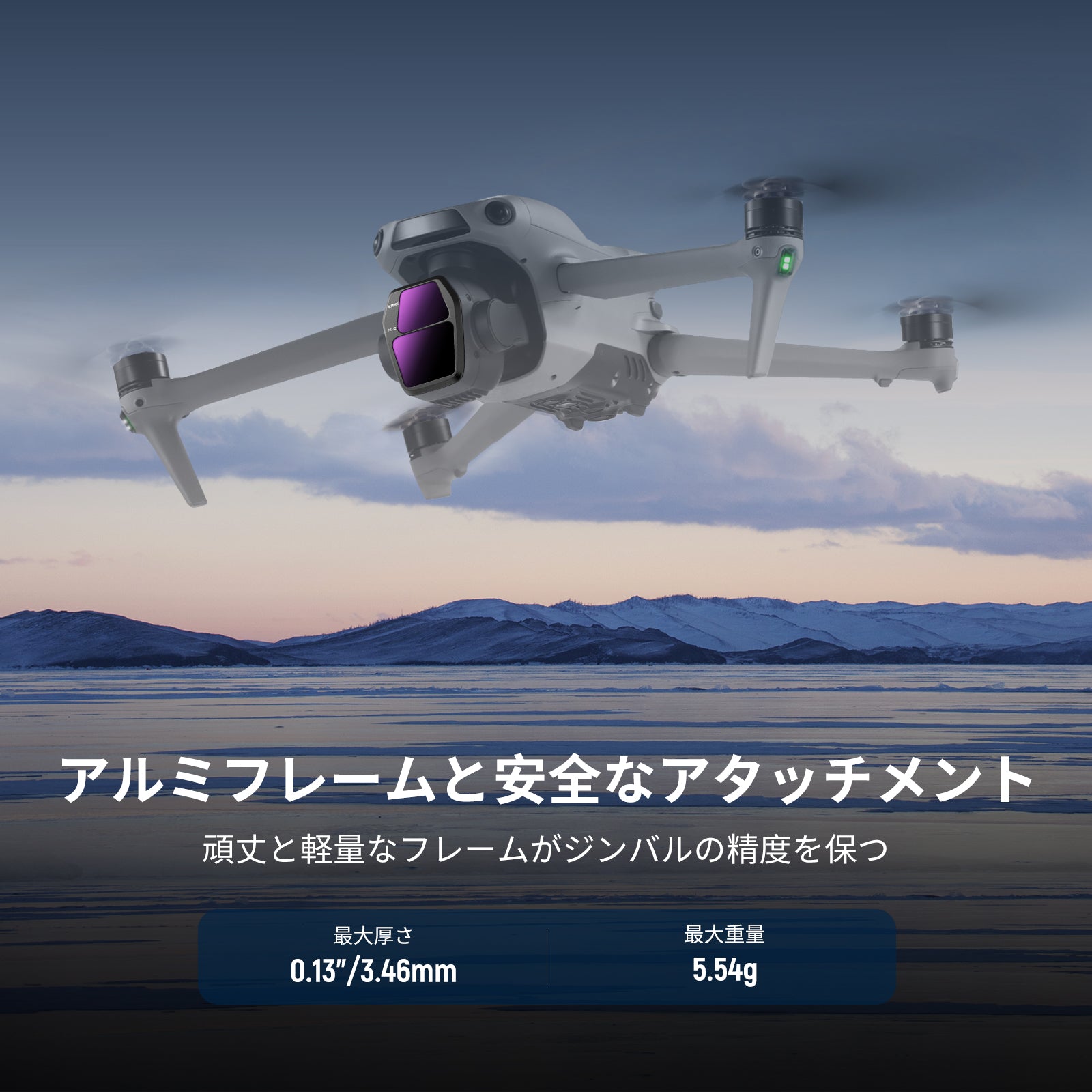 - 【コンパチブル DJI Air 3S】フィルターアクセサリーキットには、コンパチブル DJI Air 3SドローンとAir3S Fly More Combo、ND8、ND32、ND128、CPLフィルターが含まれ、プロな航空写真とビデオ撮影に最適です。
