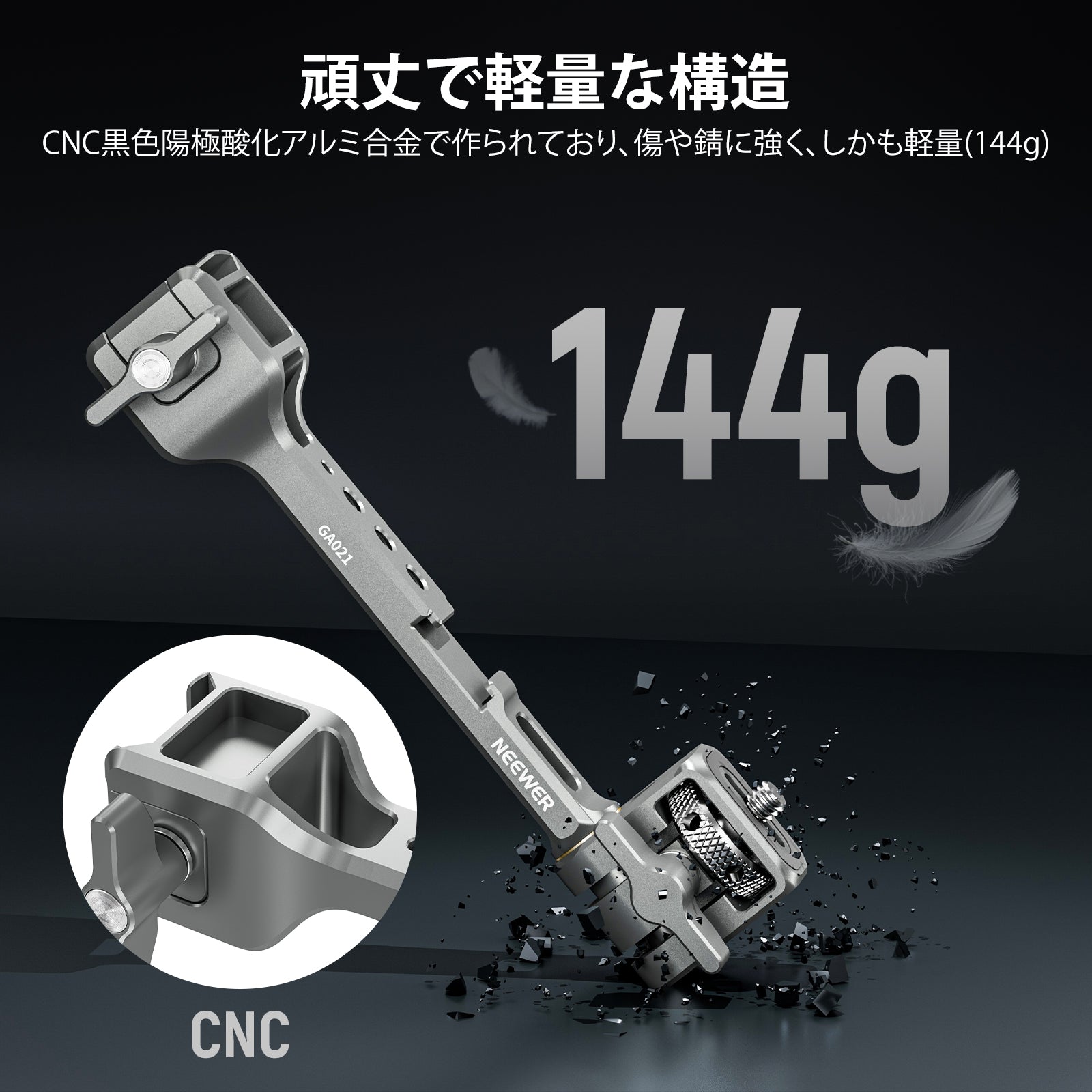 【頑丈かつ軽量な構造】ホルダーはCNC加工黒色陽極酸化アルミニウム合金で作ら、傷や錆に強い、軽量(144g)でありながら、どんな複雑な環境でも屋外制作に最適です。