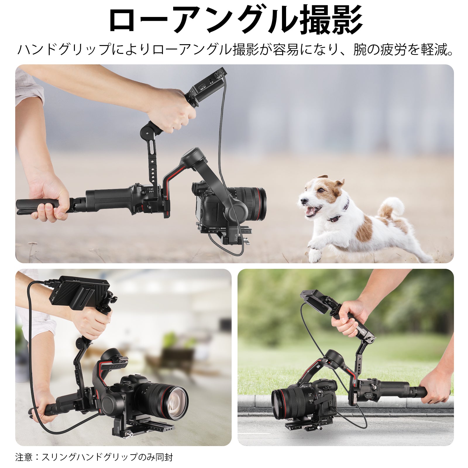 【DJI RS 2 RSC 2 RS 3 RS 3 Proに対応】アップグレードされたNEEWERスリングハンドルはDJI RS 2 RSC 2 RS 3 RS 3 Proハンドヘルドスタビライザーに対応でき、最新のRS 3とRS 3 Proを切り替えるために特別に設計されています。ジンバルモード側のキー中空加工で、より使いやすく、より安心になります。ハンドルによりローアングル撮影が容易になり、腕の疲労を軽減します。