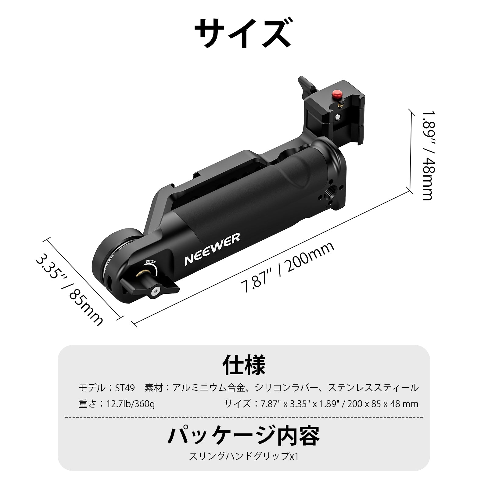 寸法:12.67" x3.35" x1.89" /322 x 85 x 48 mm