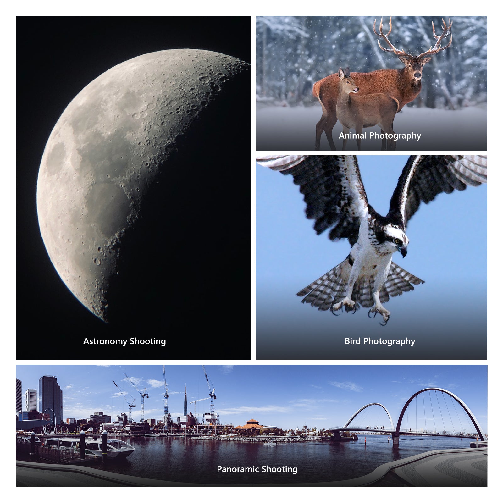 - 【ベアリング構造によるスムーズな動き】 ジンバル雲台は、垂直軸と水平軸でカメラのバランスを取り、カメラを高精度で回転させることができます。ベアリング構造なので、調整がよりスムーズではるかに簡単。野生動物やスポーツ写真で動きの速い被写体の鮮明な写真を撮りたい写真家やバードウォッチングに最適です。
