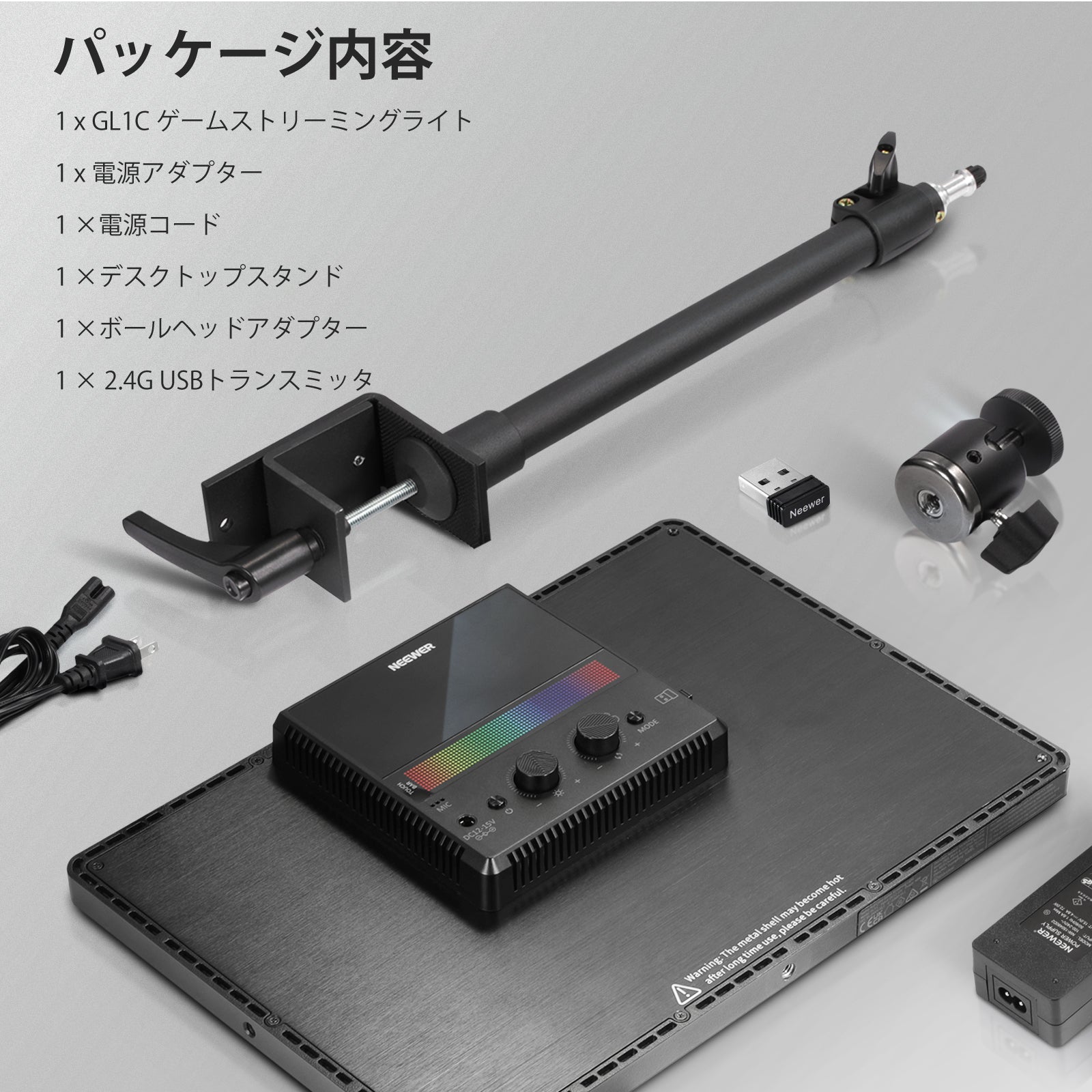 【2.4G/WiFi/Bluetooth 3ウェイアプリ接続】2.4G (ネットワークなし) または WiFi 接続用の最新の「NEEWER コントロールセンター」ソフトウェアを PC/MAC にダウンロードします。【2.4G】2.4G USB 送信機をコンピューターに接続するだけで、ソフトウェアを使用して、GL1 PRO CL124 RP18H NL660/480 を含む複数の NEEWER 2.4G ライトをグループ制御できます。【WiFi】GL1C を PC/MAC と同じ WiFi を共有し、ソフトウェアまたはStream Deckペアリングによって制御します。【Bluetooth】「NEEWER」アプリ経由でスマートフォン制御をサポートします。