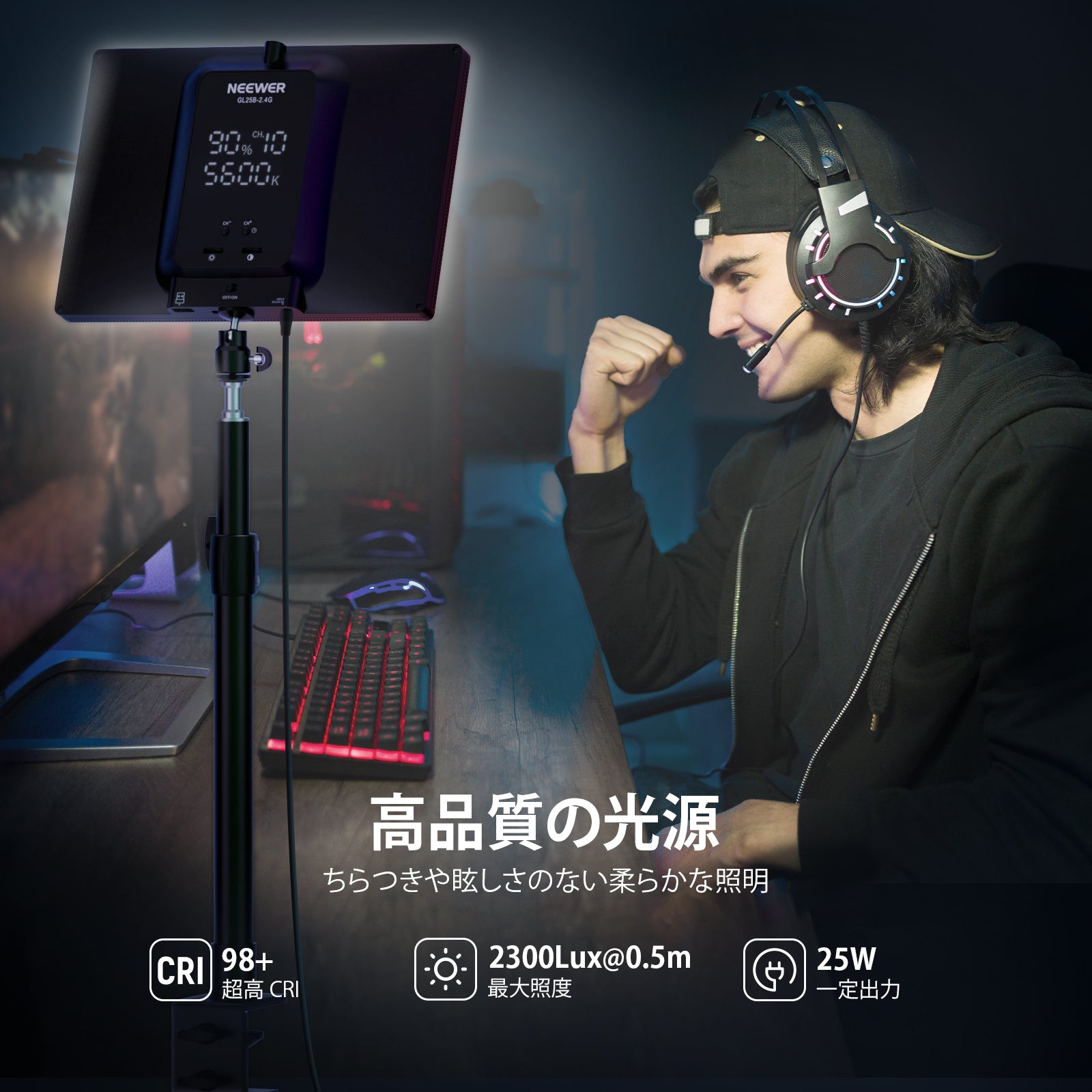 【幅広い色調】0~100%の調光範囲と2900K~7000K の調整可能な色温度により、周囲の光に簡単にマッチし、滑らかな肌の色を実現します。超高いCRI 98+ 評価により、コンテンツ内の鮮やかで正確な色を忠実に再現します。