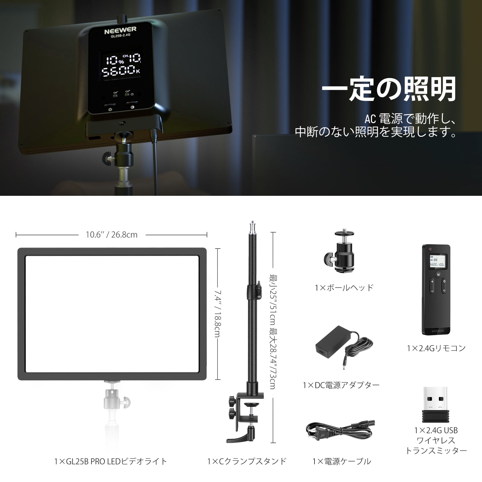 1 x GL25B ライトパネル (2.4G USB 送信機付き)