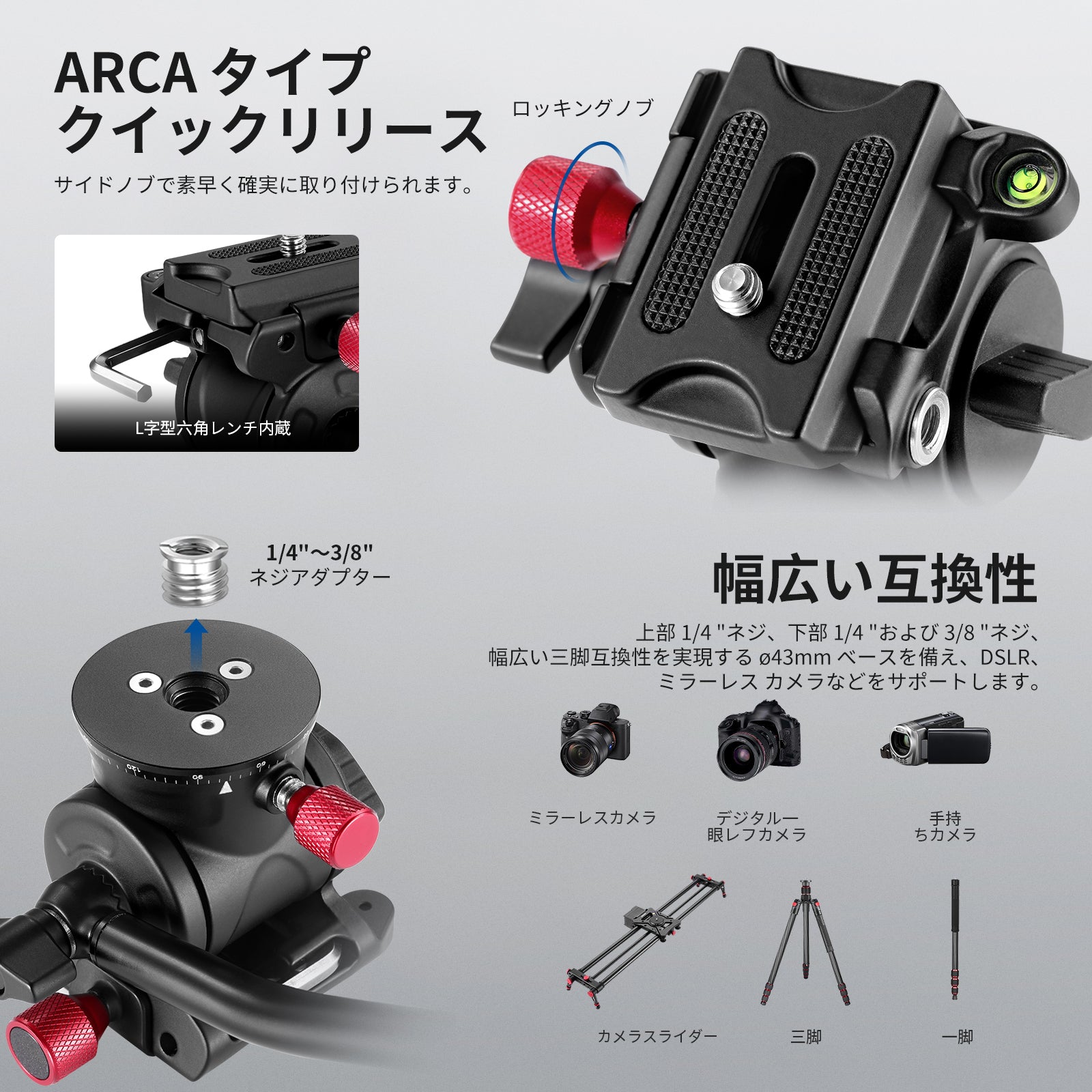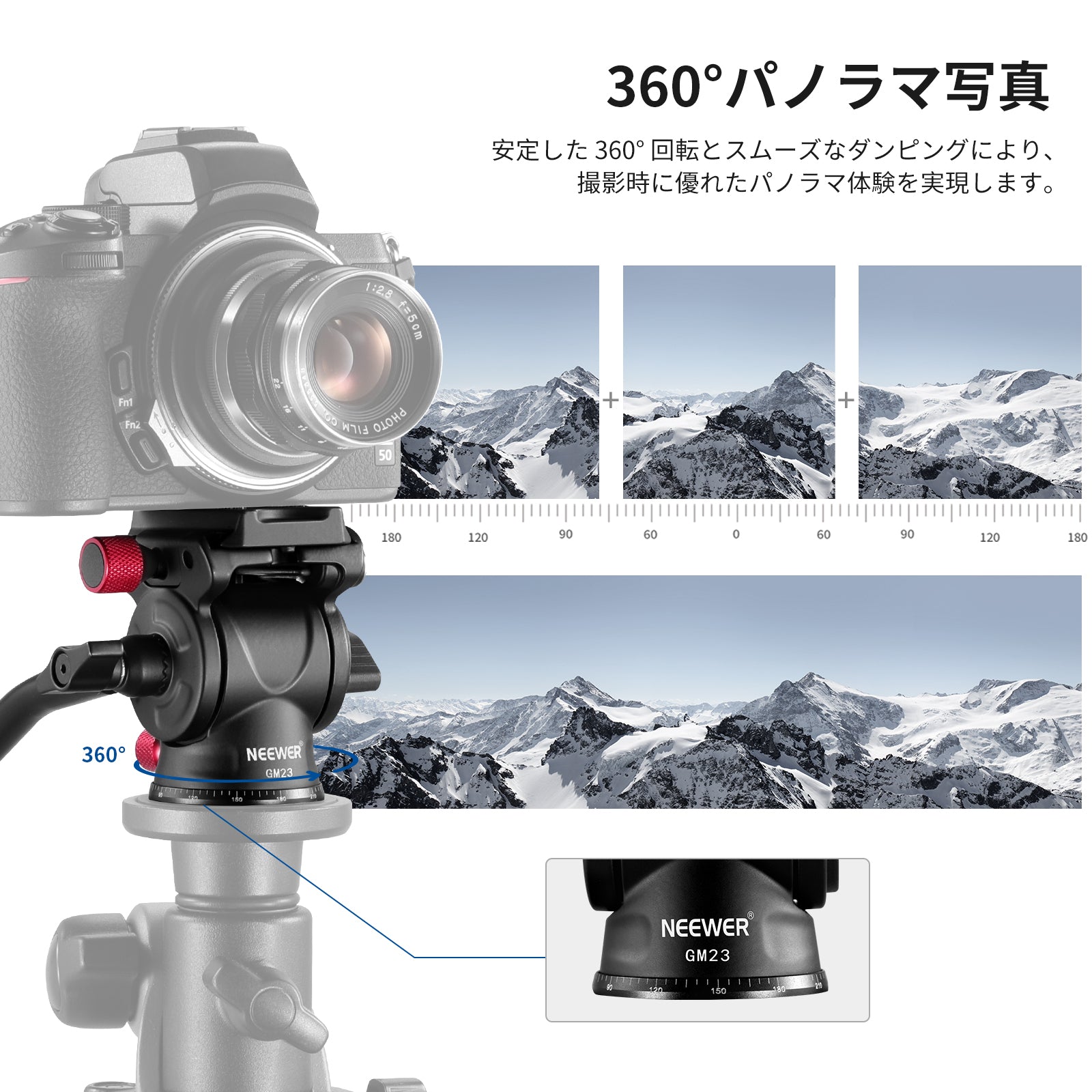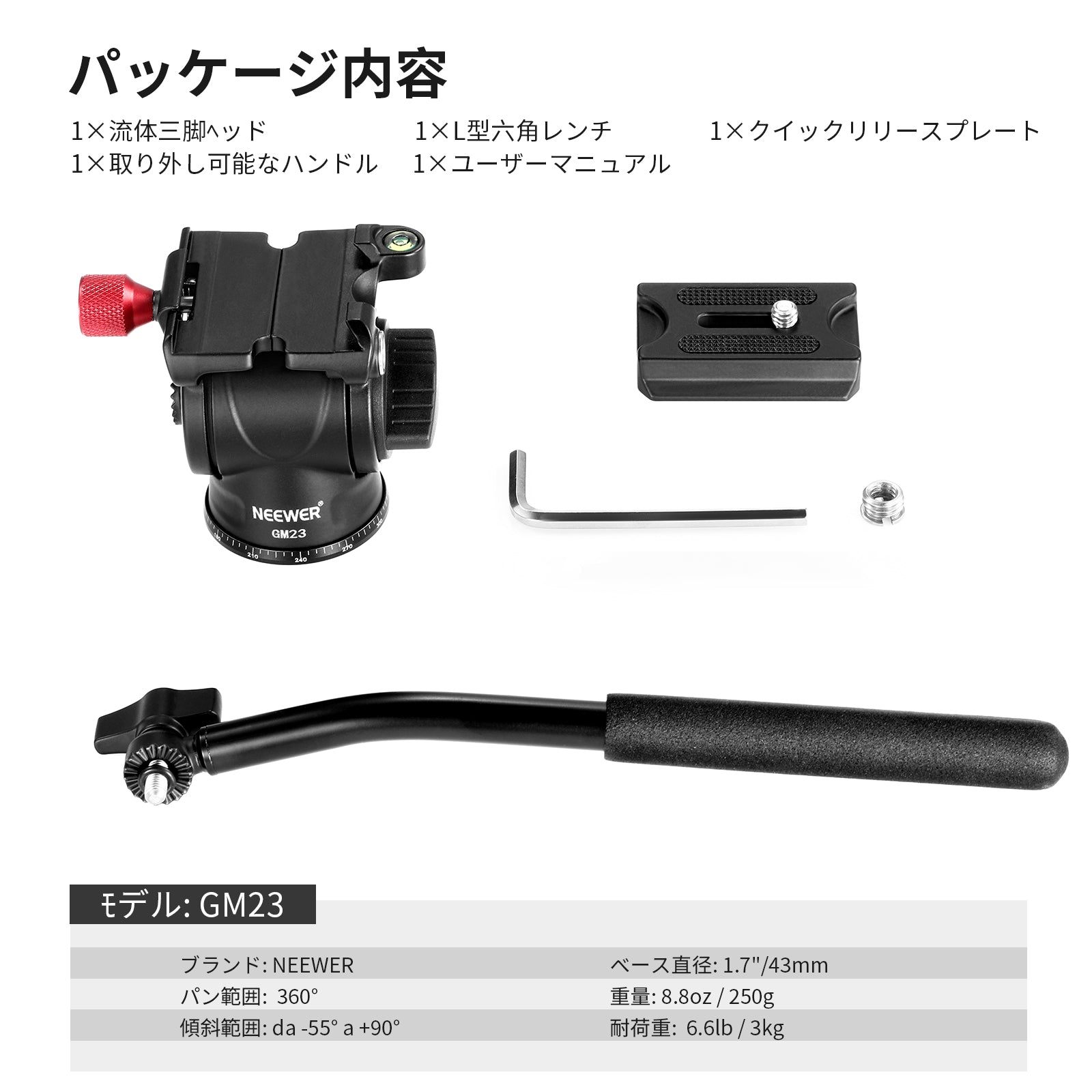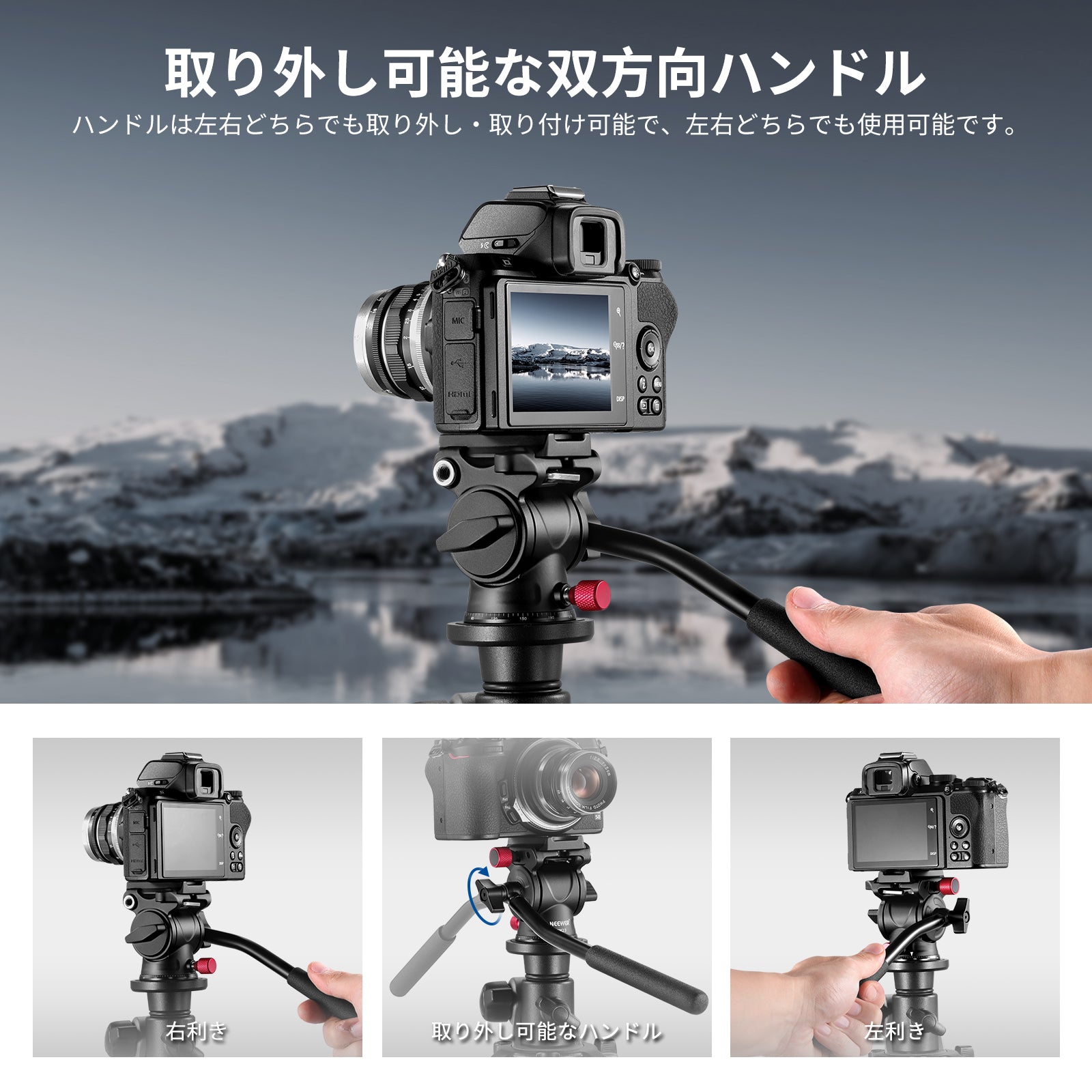 【様々なデバイスに適用】耐荷重6.6lb (3kg)の流体ヘッドは、DSLRカメラ、ミラーレスカメラ、コンパクトビデオカメラ、その他のデバイスをサポートできます。気泡水準器は水準器をまっすぐに保つことができ、1/4"ネジはアクセサリの取り付けに使用されます。