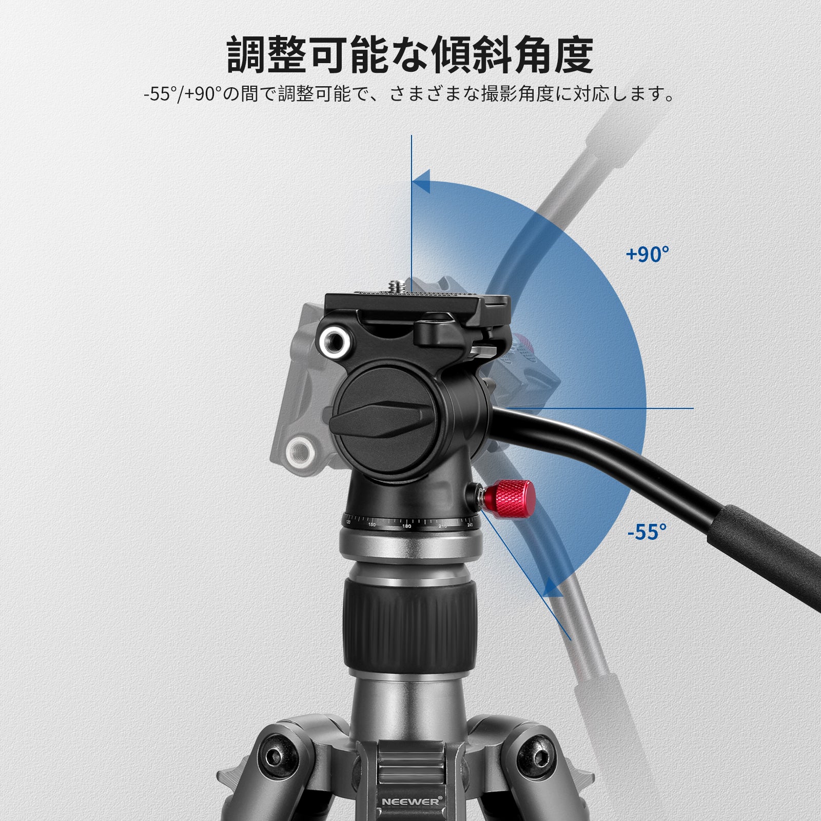 【360°回転&-55°/+90°チルト】快適な摩擦減衰により、あらゆる撮影角度でヘッドを360°回転させたり、-55°~90°まで傾けたりすることができます。ロックノブを使用して固定し、鮮明な写真やビデオを撮影します。