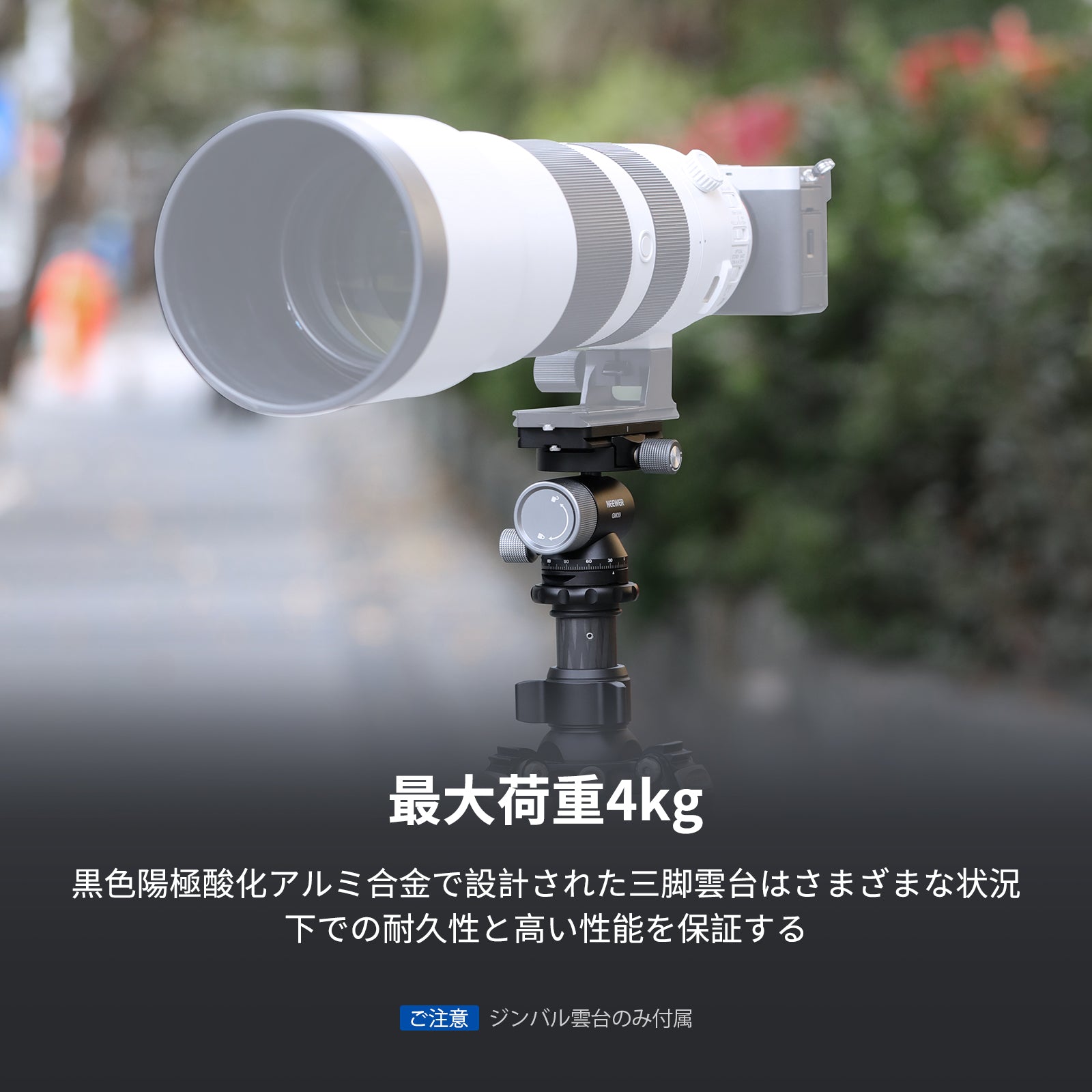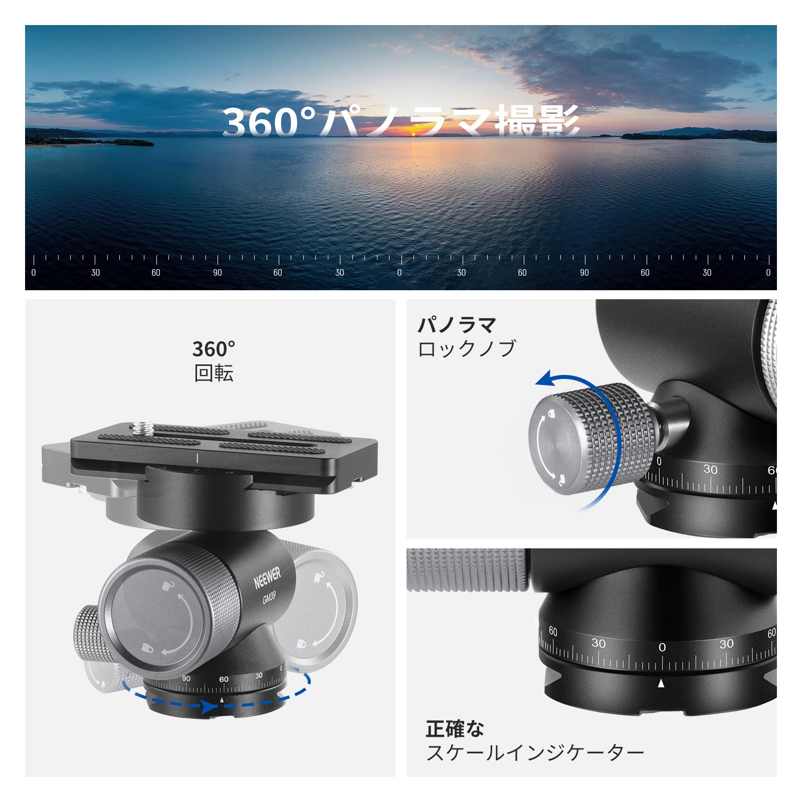 - 【薄型ボール雲台&360°パンベース】ジンバル雲台は360°ボール雲台と90°垂直撮影用単一のUノッチを備えており、垂直撮影と水平撮影の間のシームレスな移行を可能にする拡大されたローレットノブを備えています。360°回転可能なパンベースも付属しており、パノラマ撮影が可能です。
