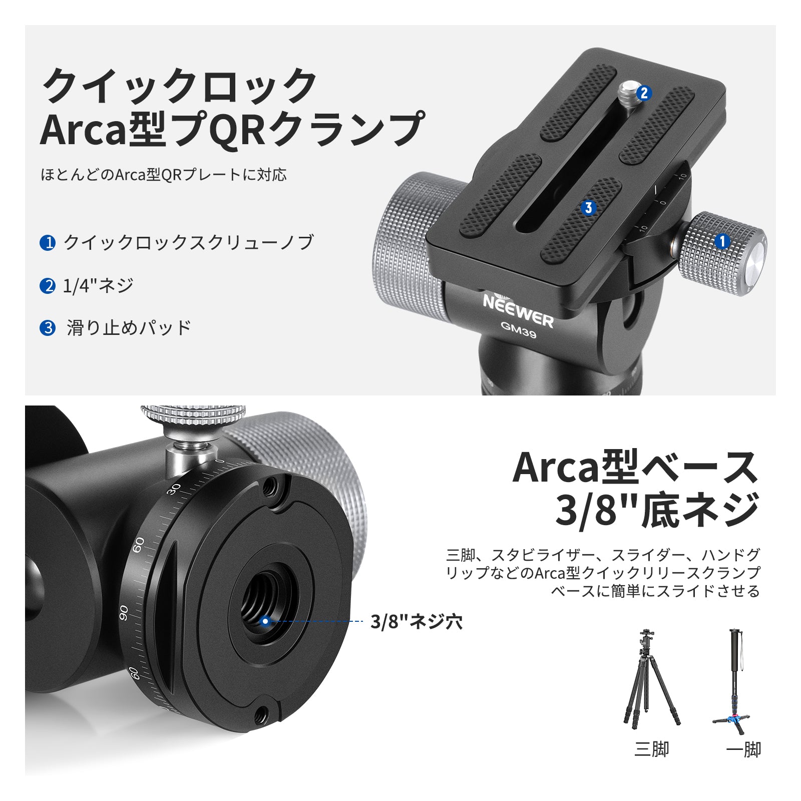 - 【Arca型ベース&3/8"底部ネジ】三脚、スタビライザー、スライダー、ハンドグリップ、その他のサポートシステムのArca型クイックリリースクランプベースに簡単にスライドできるArca型ベースと統合されています。底部の3/8"ネジ穴は三脚、一脚、スライダーなどにも取り付け可能です。