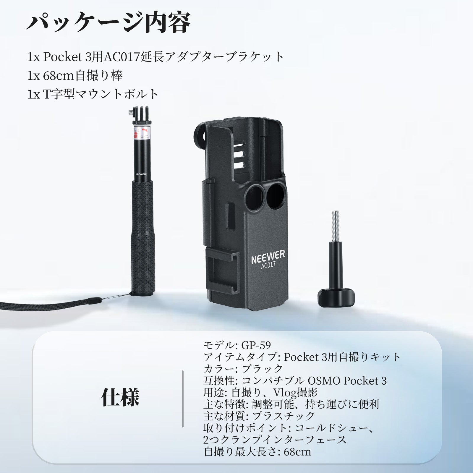 NEEWER BASICS GP-59 延長アダプター&三脚用自撮り棒 コンパチブル DJI Osmo Pocket 3