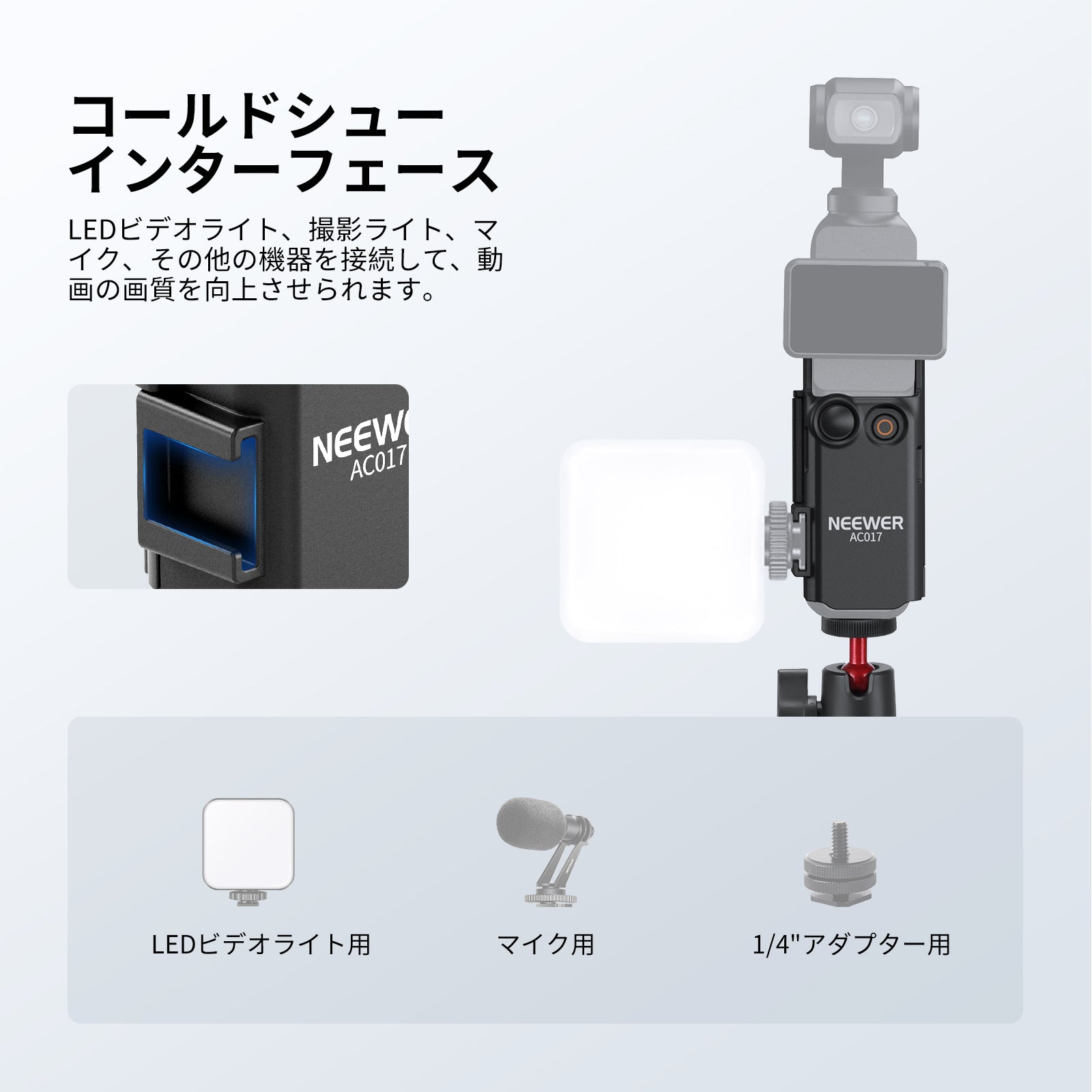 - 【ポケット用登山キット】NEEWER GP-66ジンバルカメラケースマウントアクセサリーキットには、コンパチブル Osmo Pocket 3とCreator Combo用延長アダプターマウント、フレキシブルミニ三脚、アダプターブラケット、T字型ボルトが含まれています。軽量で持ち運びに便利なキットで、Pocket 3を簡単に保持し、YouTubeのビデオ撮影、スムーズなビデオ録画、自撮り、トレッキングやハイキングなどのアウトドアアドベンチャー中にアクション満載のビデオブログができます。