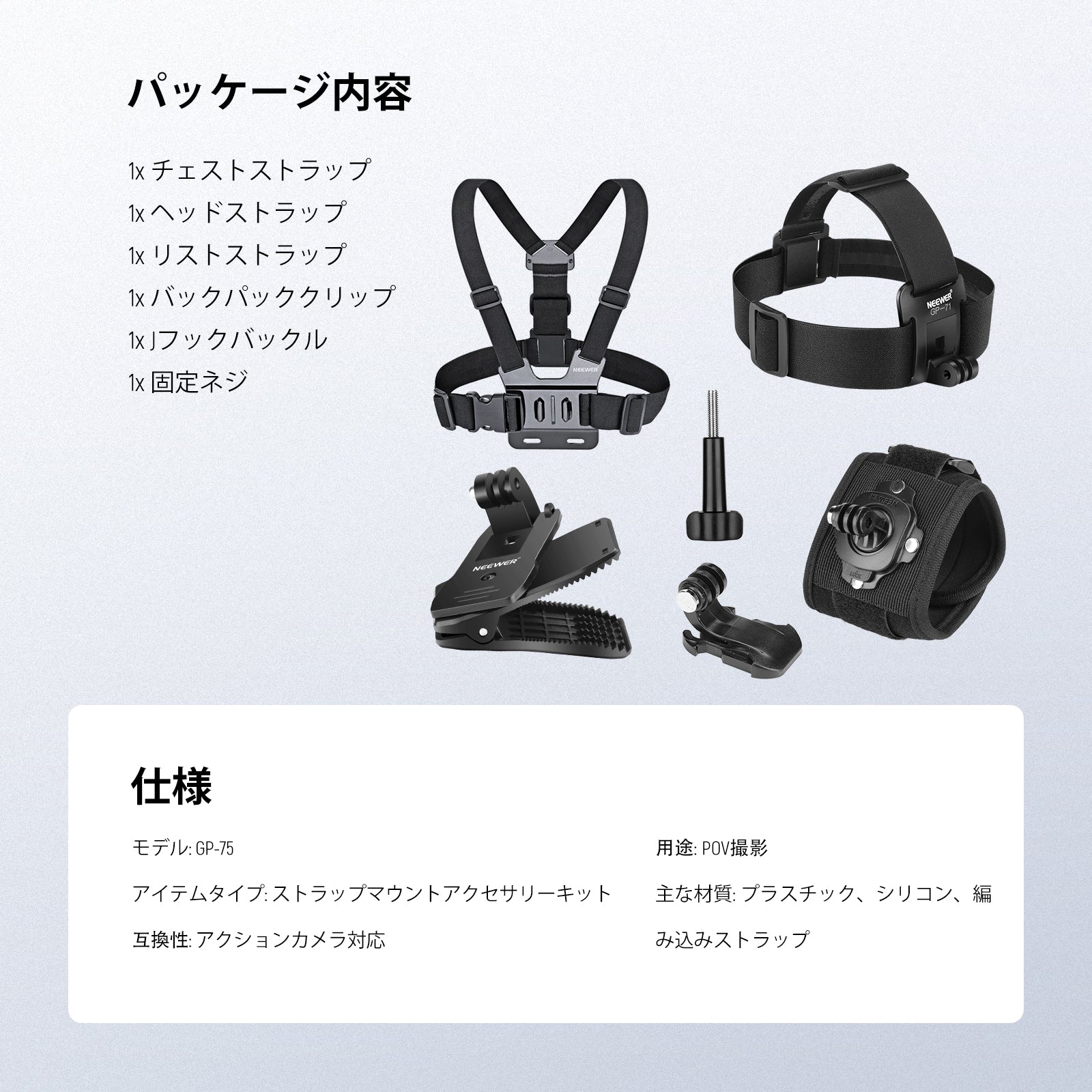 NEEWER GP-75 アクションカメラアクセサリーキット