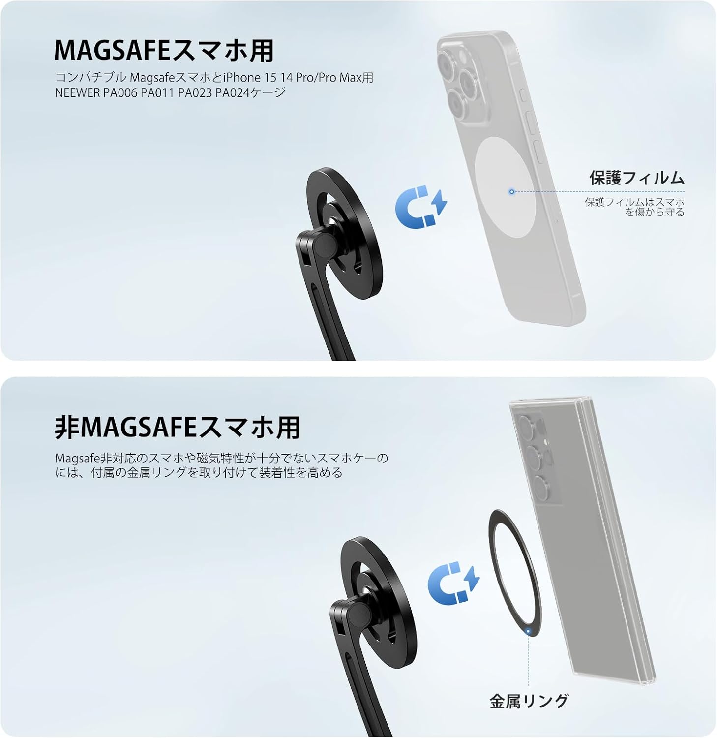 - 【スマホからアクションカメラ撮影まで】磁気スマホホルダーはコンパチブル iPhone 16 15 Pro Max Plus 14 13用MagSafeケース。磁気特性が不十分なスマホの場合、互換性を広げるためにスマホケースに取り付ける2つの磁気リングが付属しており、GP16はほとんどすべてのスマホに適しています。磁気アクションカメラマウントアダプターはコンパチブル Hero 12 11 10 9 Max、コンパチブル Insta360 Go2 Go3、コンパチブル Osmo Action 4 3 2など。