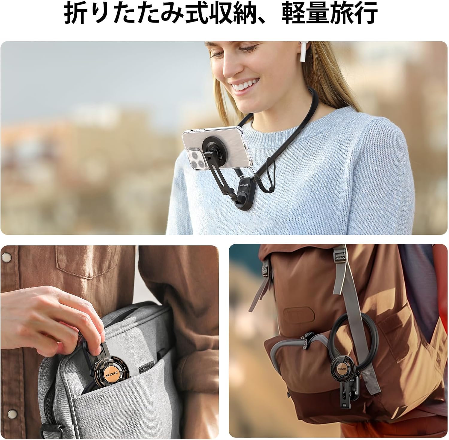 - 【様々な角度に切り替え可能】録画用三つ折り磁気ネックホルダーは180°まで調整でき、俯瞰、上向き、垂直撮影など様々な角度を可能で、ポートレート、風景、Vlog、その他の写真撮影作品に最適です。