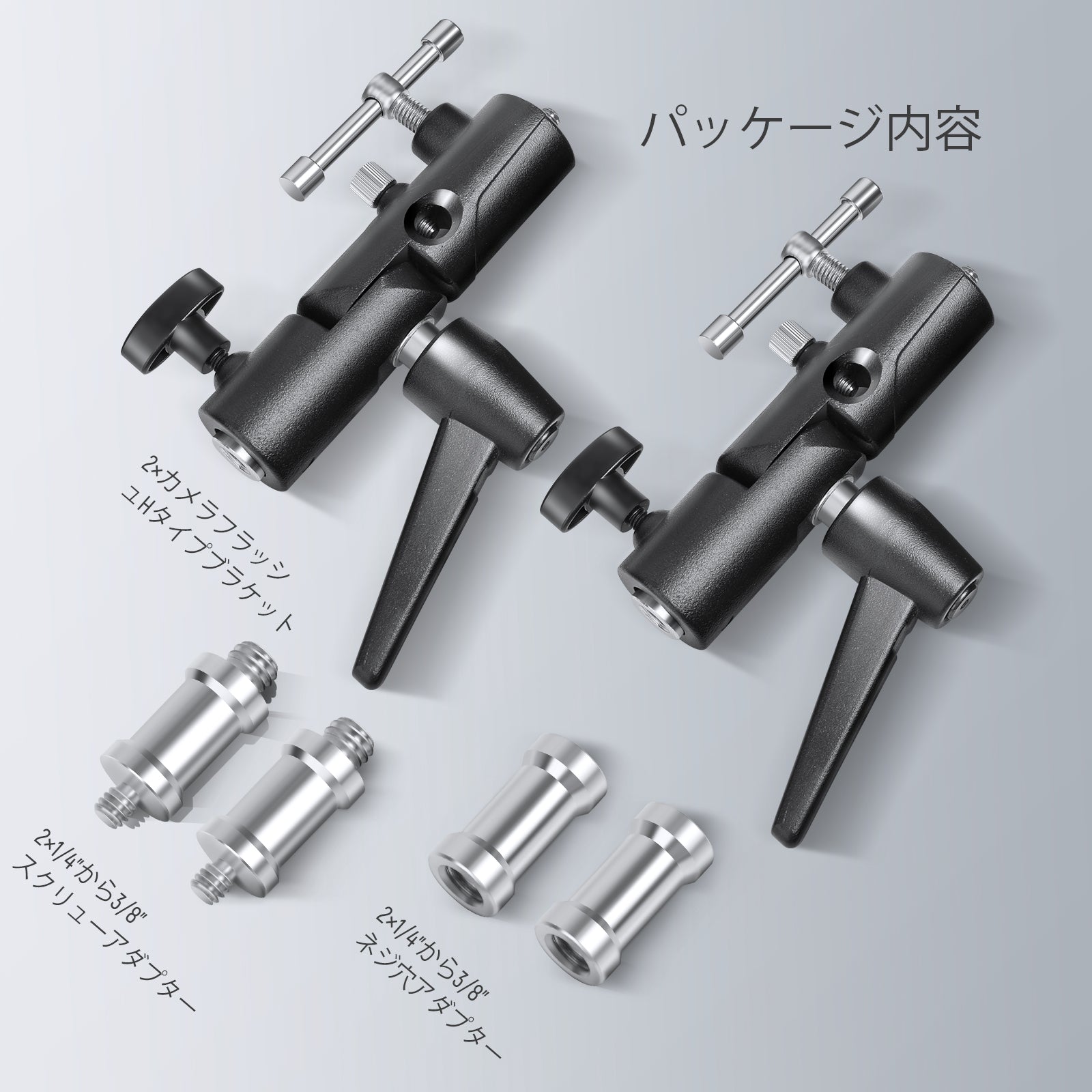 【多機能ブラケットマウントアダプター】NEEWER カメラフラッシュブラケットは元々はライトスタンドでスピードライトフラッシュをサポートするように設計されていましたが、柔軟なフラッシュブラケットマウントは上部に 1/4"-3/8" の二条ねじアダプターが付いており、1/4インチまたは3/8インチネジ山付きのほぼすべてのマウント可能なデバイスを固定するために再利用できます。例えば、カメラフラッシュ、LEDライトパネル、照明ソフトボックス、ストロボライトなどです。