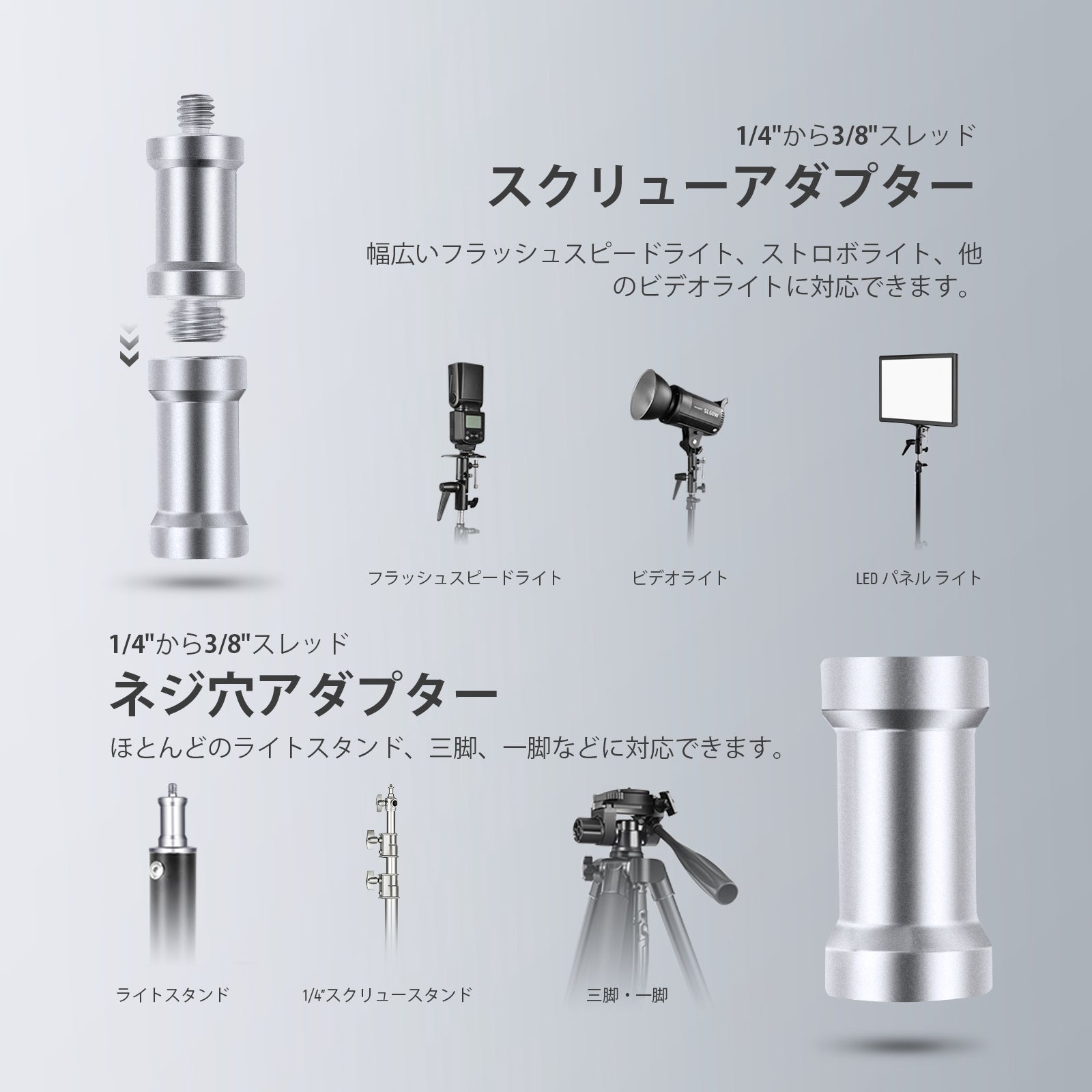 1× 1/4"-3/8" 二条ネジ穴アダプター