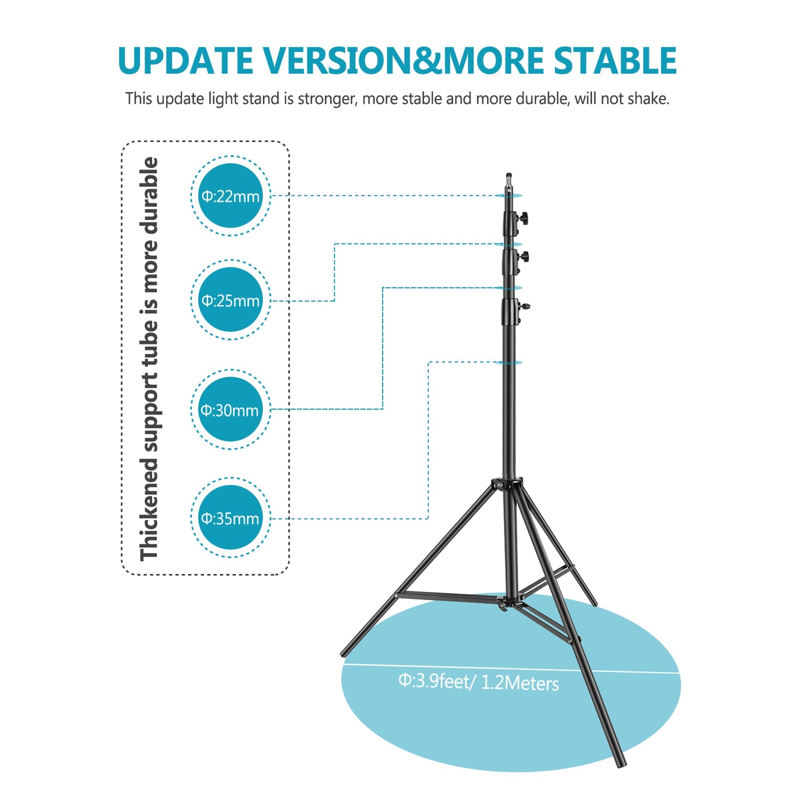 - ライトスタンドは、なめらかな黒仕上げの丈夫なアルミニウム合金でできており、重型作業に強い強度を提供します。
