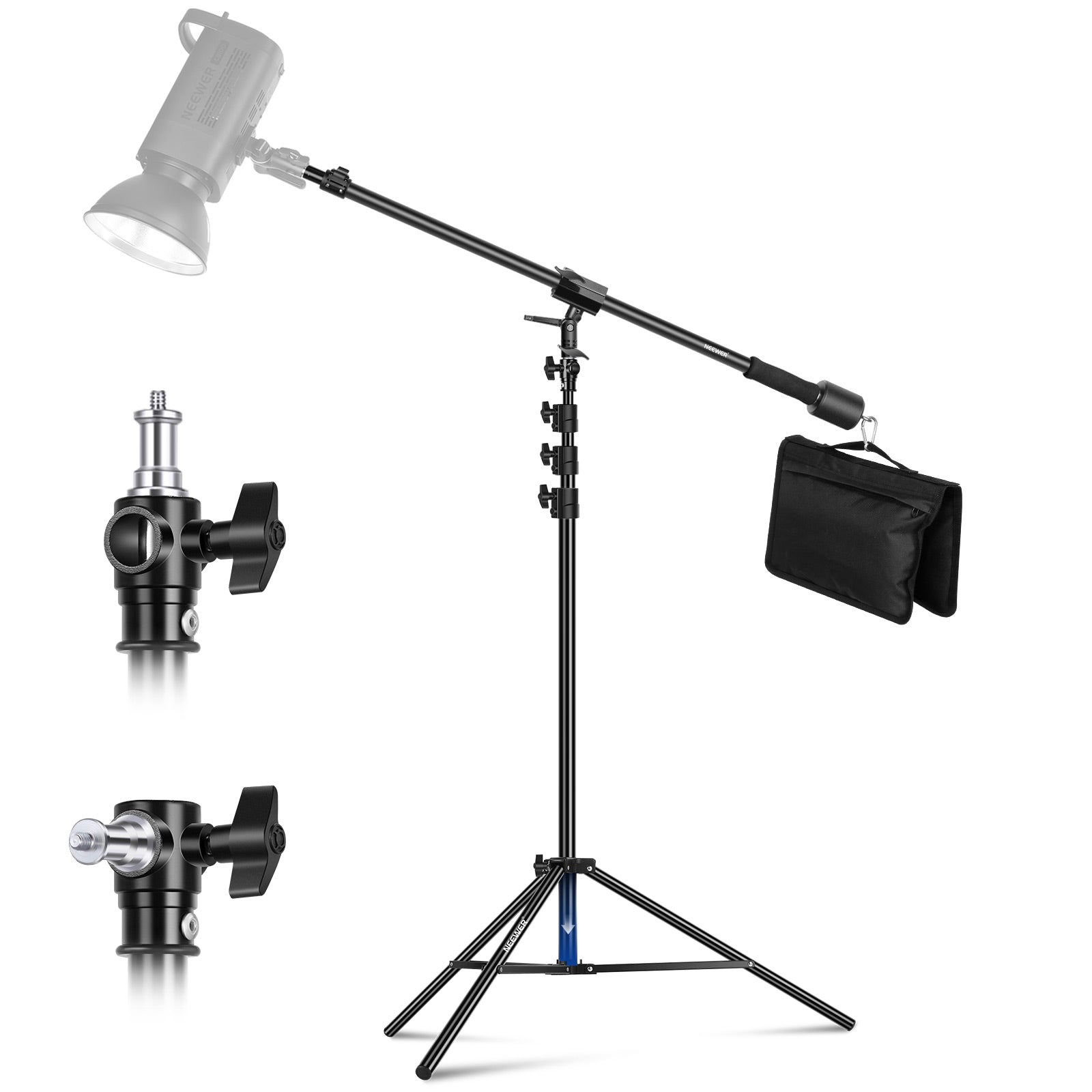 【簡単な高さとアームの長さ調整】4セクションのテレスコピックコラムを42インチ/106cmから9.8フィート/3mまで伸ばすことでスタンドの高さを簡単に調整し、ロックノブでお好みの高さに固定します。2セクションの伸縮ブームアームは35から"/89cm to 61"/155cmの長さ。折りたたみ可能なデザインとゴムパッド付きの足で、スタンドは持ち運びが簡単で、床を傷つけません。屋外と屋内の両方の撮影に適しています。