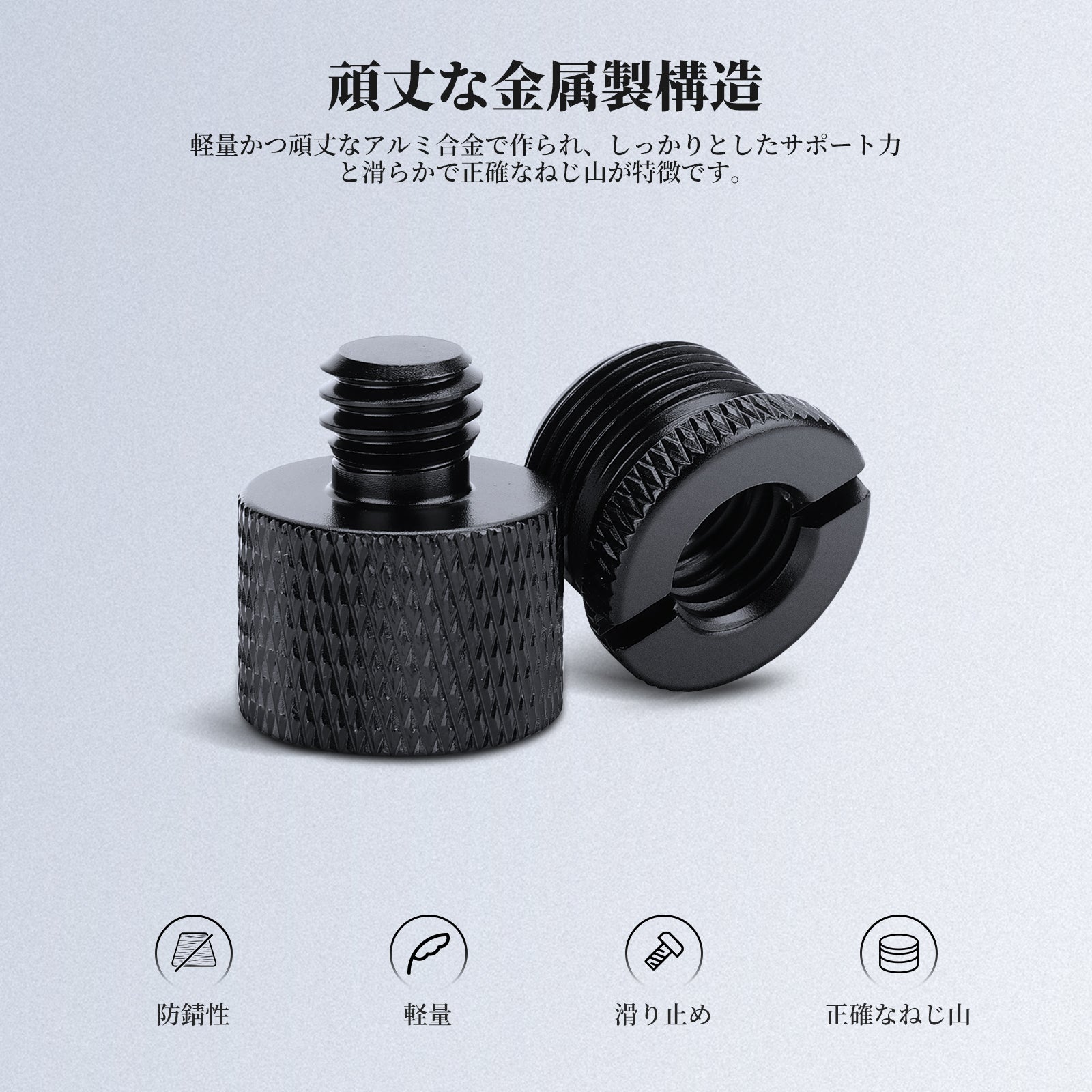 【金属製&頑丈な構造】ネジアダプターは、アルミ合金製で作られ、軽量かつ頑丈で、強力なサポート力を備え、滑らかで正確なネジ山は錆や塗装の剥がれに強いです。コンパクトなデザインで、マイクやカメラをしっかりと固定できるだけでなく、他の機器との互換性も向上させ、コンテンツクリエイターやインフルエンサーにとって必要なアイテムとなっています。