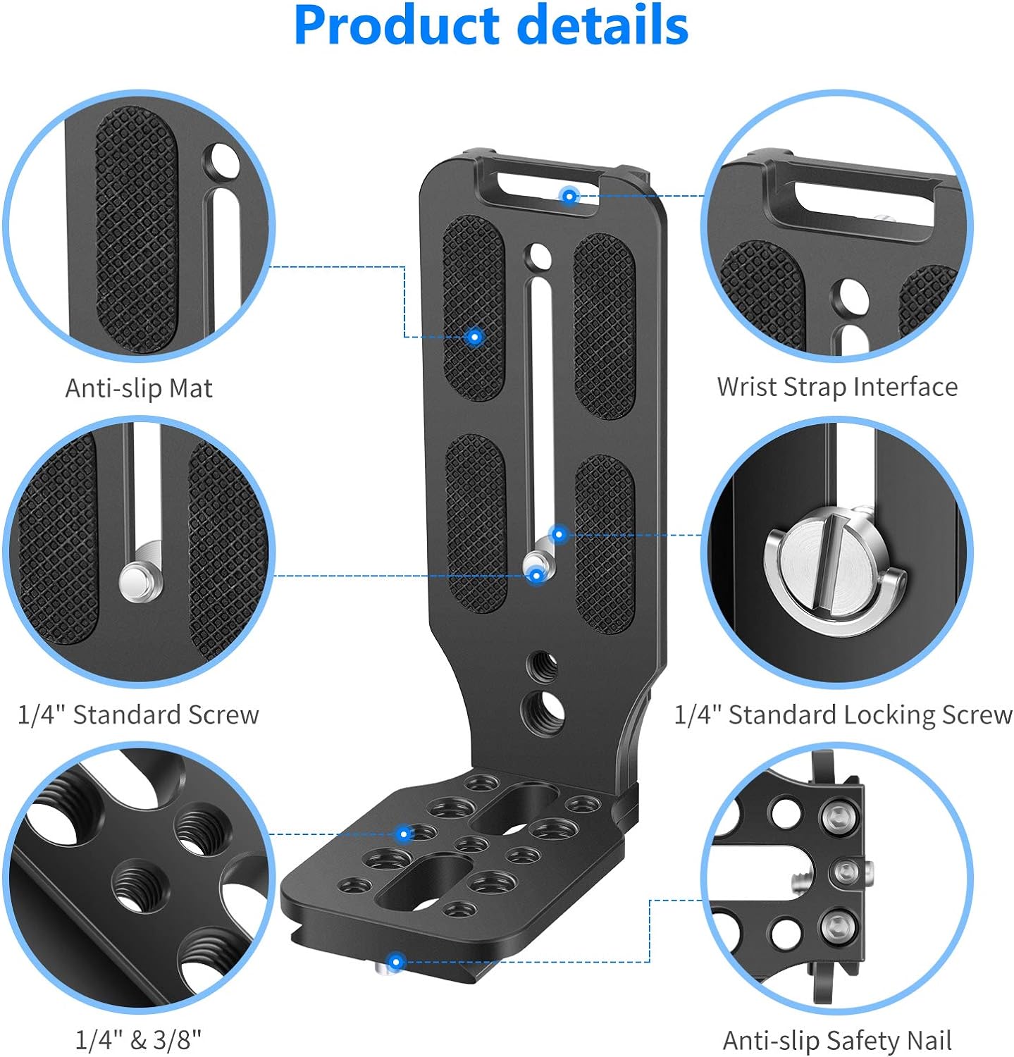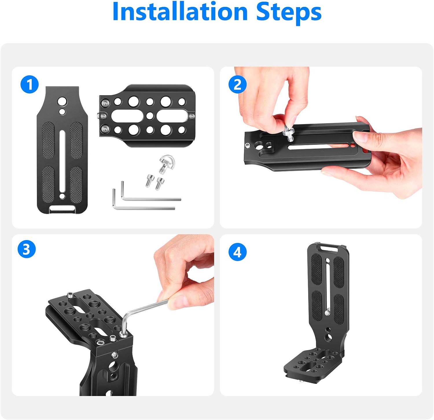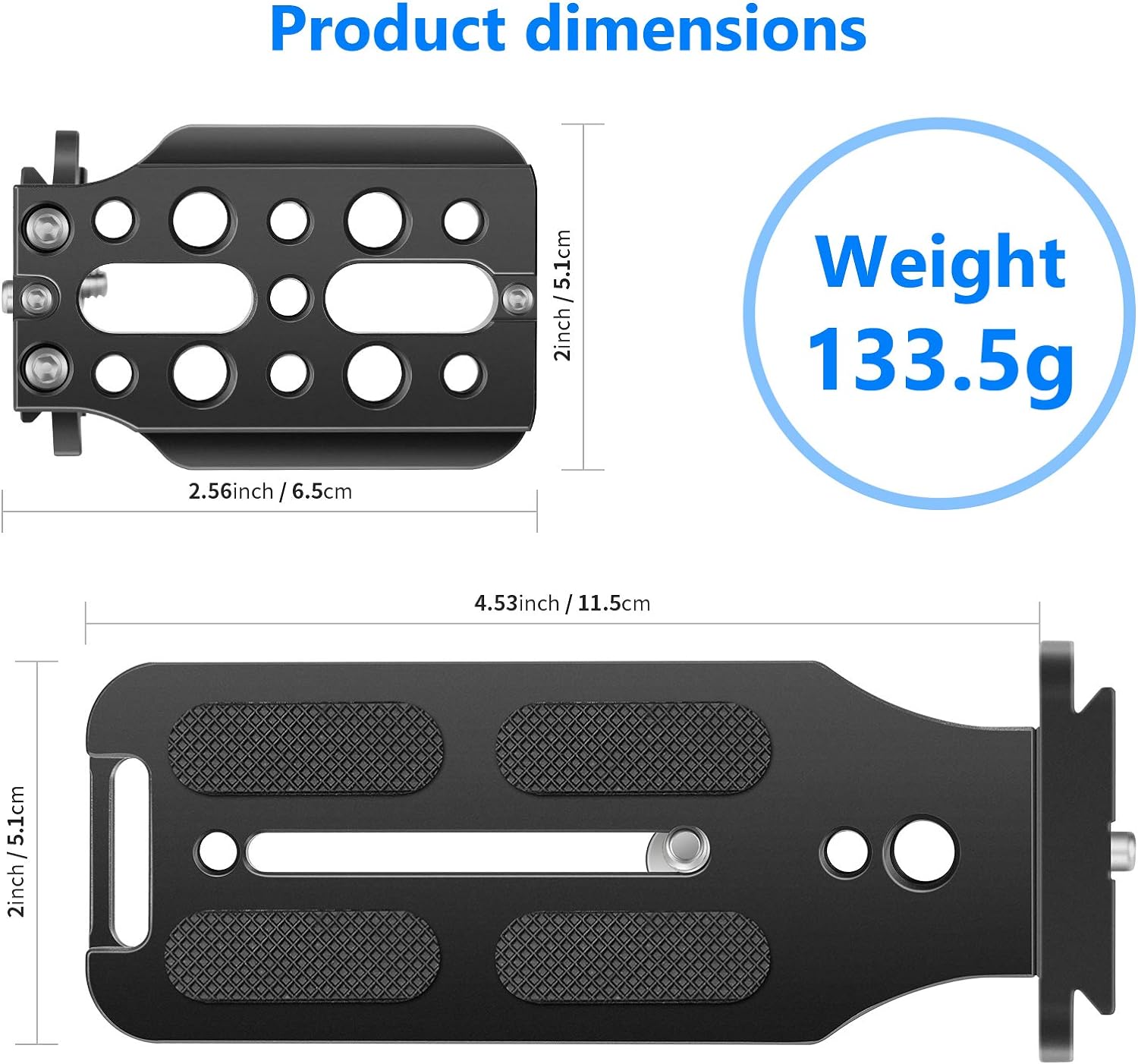 - 標準1/4インチネジ:1/4インチネジを使用すると、DJI Osmo Ronin Zhiyun Smoothなどのジンバルスタビライザーに使用できます。Instagram、IGTVの垂直ビデオ撮影に最適なアクセサリーです。注:どちらのプレートにも3/8のネジ穴はありません。