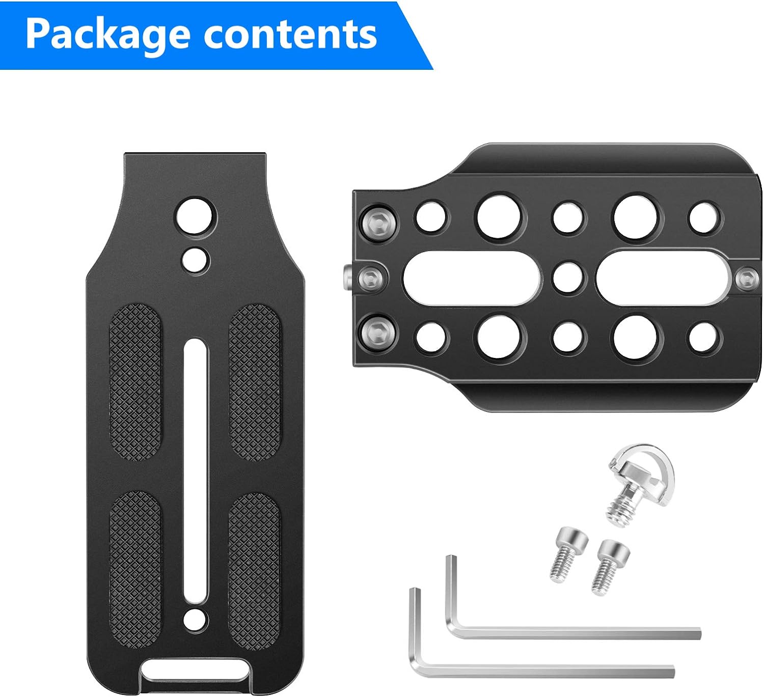 - 頑丈な素材:高精度のCNC技術を備えたアルミニウム合金製のプレートは軽量で耐腐食性があり、両側にある2ピースプレートは滑り止めの爪が付いており、クランプのU字型の溝と連動してカメラを保護できます。