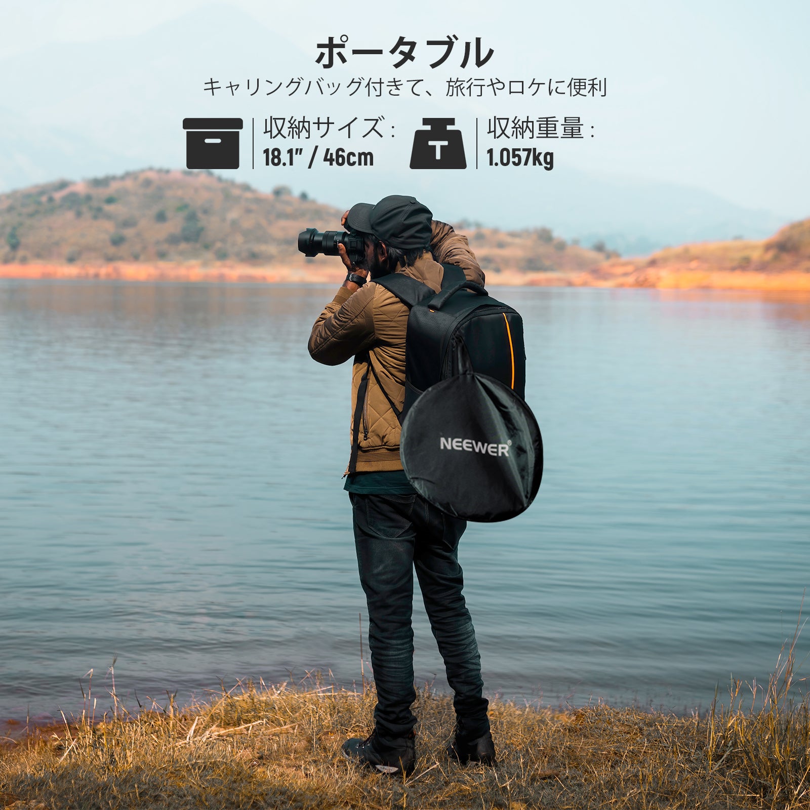 • 【収納に便利な折りたたみ式】ライトレフ板は簡単に保管するために折り畳み式であり、付属のバッグで持ち運びができ、屋外の旅行写真やロケ撮影に最適です。