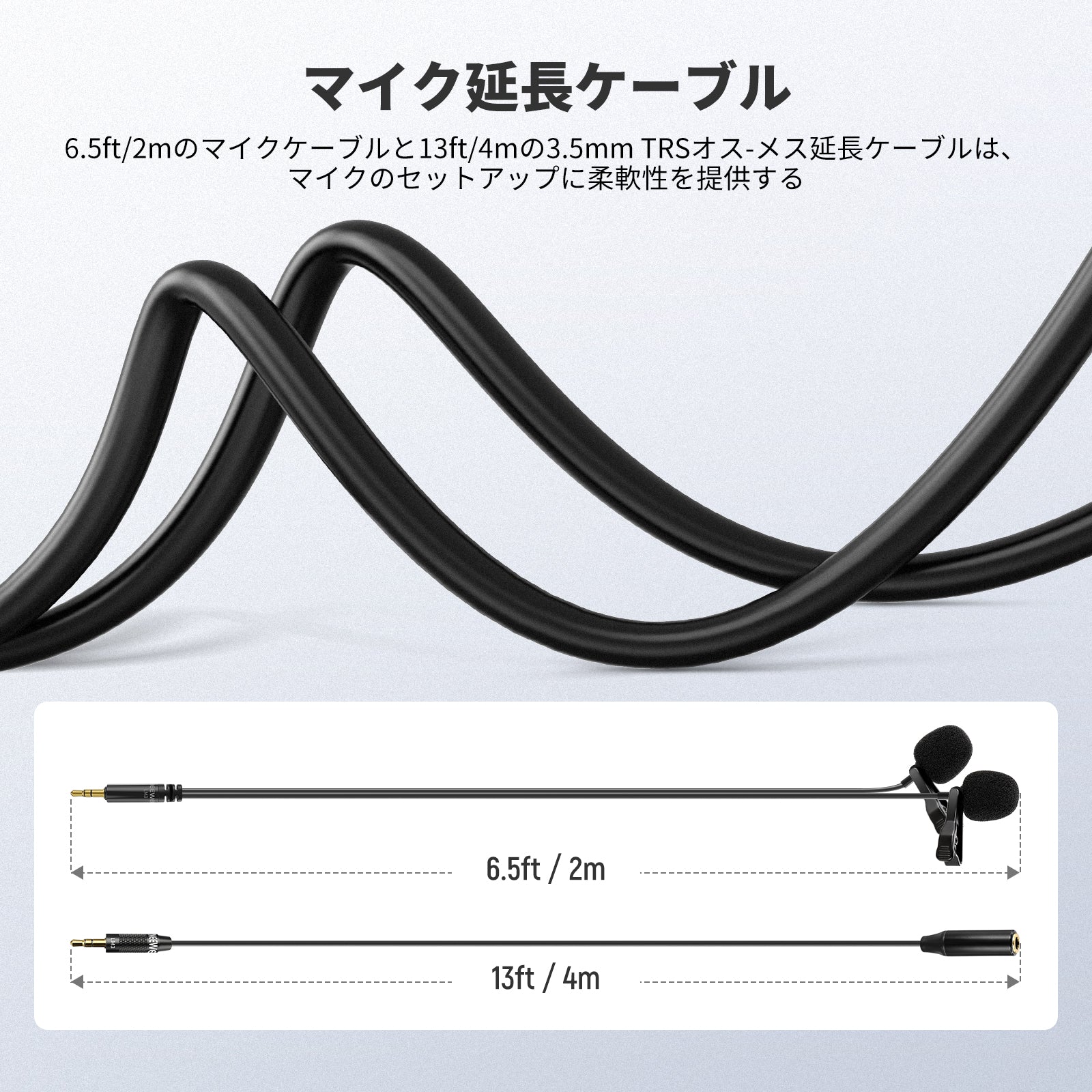 - 【13ft/4m長いTRS延長ケーブル】6.5ft/2mのマイクケーブルと13ft/4mの3.5mm TRSメスからオスの延長ケーブルは、マイク設定の柔軟性を提供します。