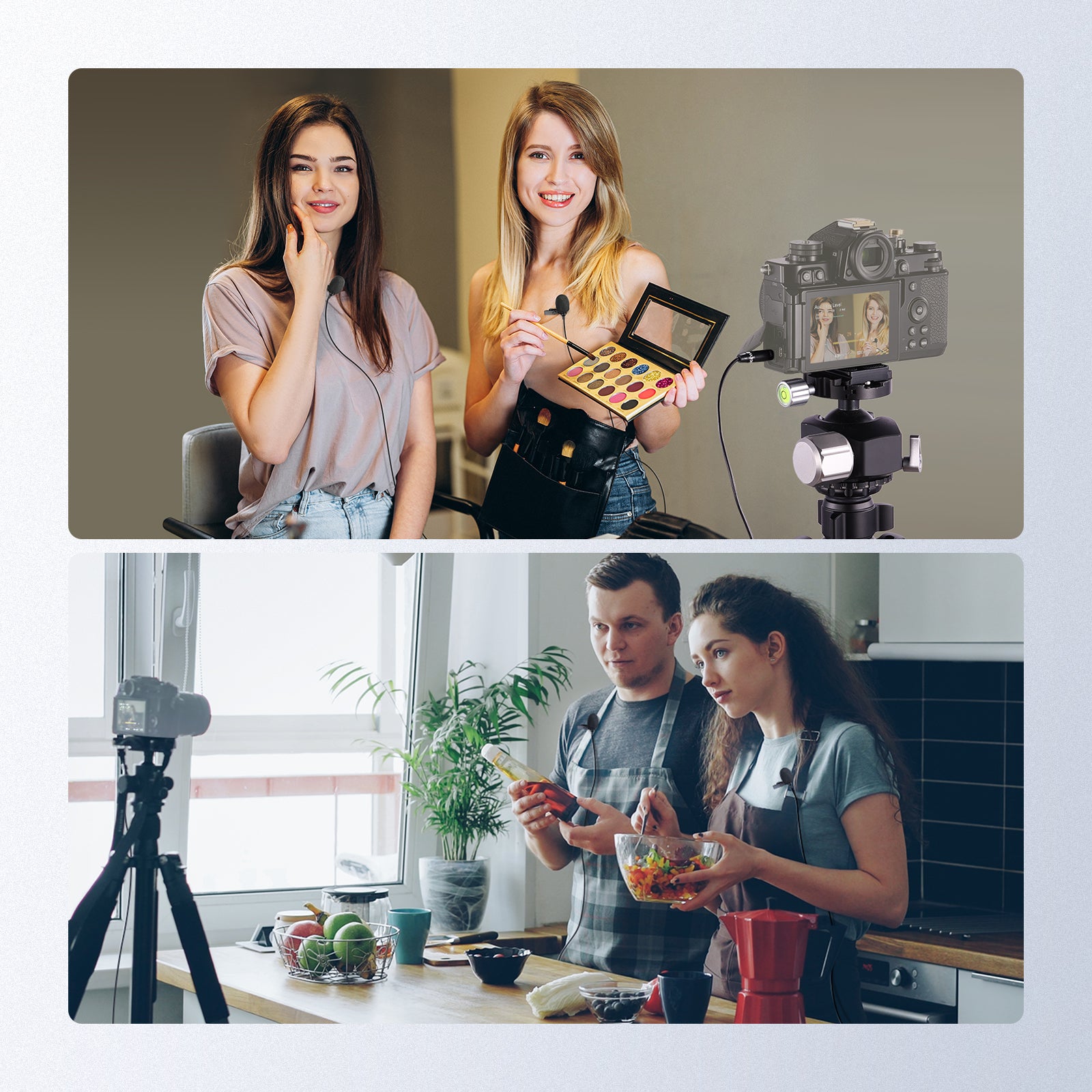 - 【デュアルラベリアマイクセット】2 人の音声を同時に録音します。インタビュー、YouTubeスターターブログキット、TikTokソーシャルメディアブログ、ポッドキャスト、ビデオ録画、生放送、または2つの音源をキャプチャする必要があるあらゆる状況に最適です。