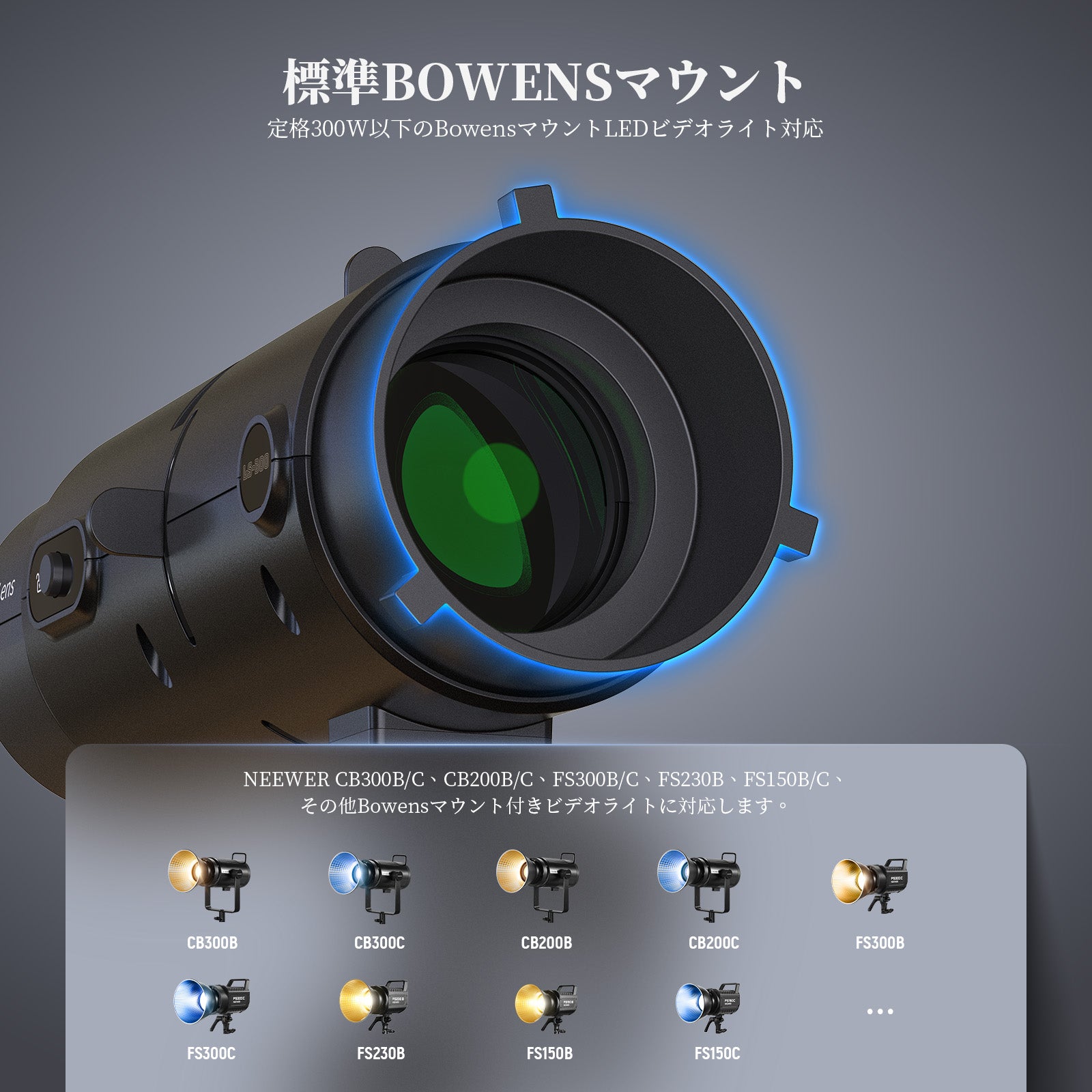- 【Bowensマウント対応】標準Bowensマウントを採用し、素早く着脱式が可能です。NEEWER CB300B、CB300C、CB200B、CB200C、FS300B、FS300C、FS230B、FS150B、FS150Cなど、定格300W以下のBowensマウント連続ビデオライトに適合します。