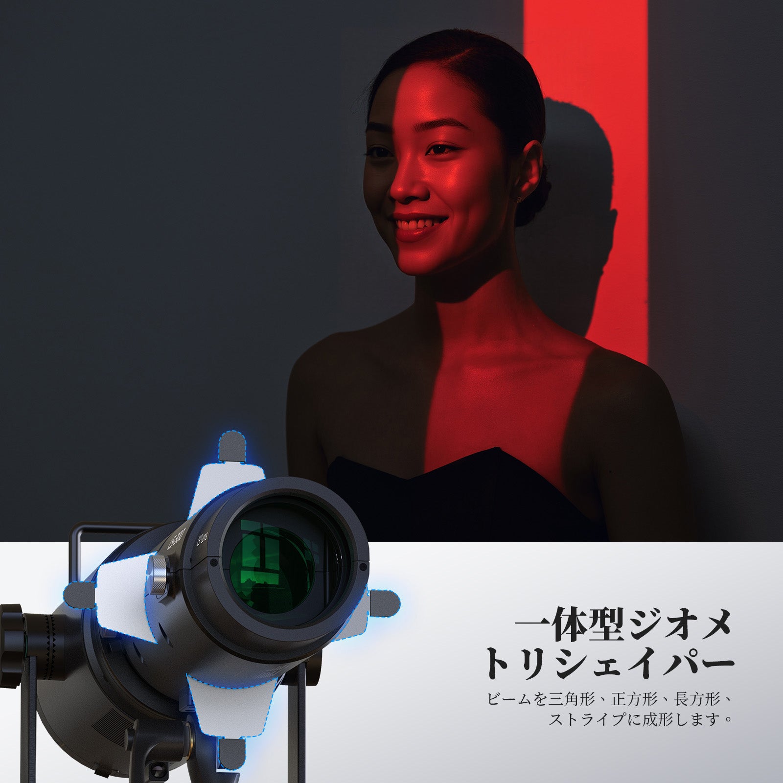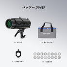 - 【16個ゴボ+ジオメトリックシェイパー】16個パターンゴボが、撮影に芸術的な効果をもたらします。内蔵したジオメトリックシェイパーは、ビームを三角形、正方形、長方形、またはバー状にカットできます。光点径を微調整するには、アイリスシャッターを別途ご購入ください。