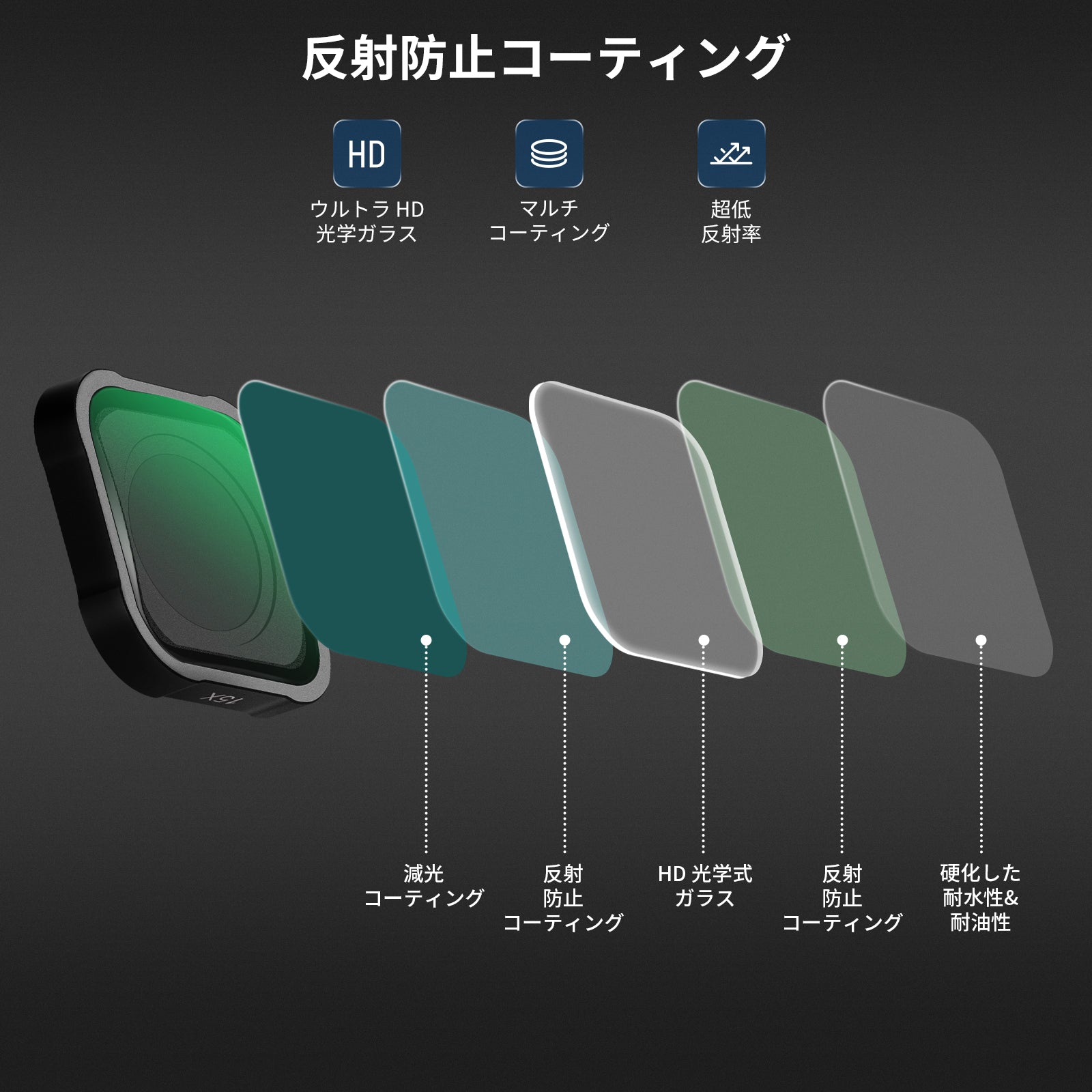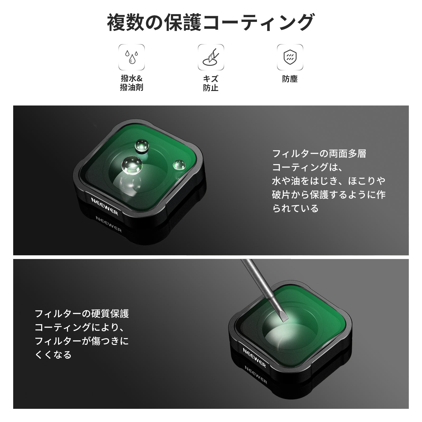 - 【アクションカメラ用に設計】アクションカメラシリーズ用にカスタマイズされており、コンパチブル Hero 11 Black Hero 10 Black Hero 9 Black とシームレスに対応します。ひねるだけでフィルターをアクションカメラに取り付けることができ、必要に応じて別のフィルターに素早く簡単に交換できます。