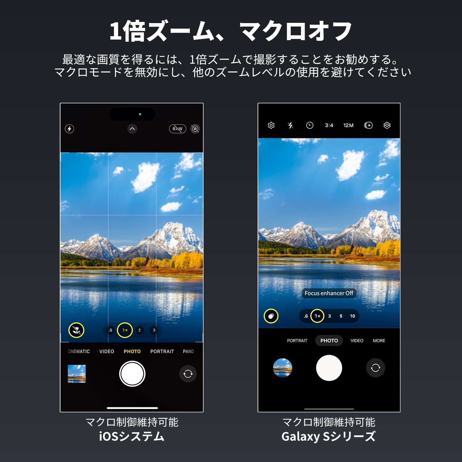 - 【頑丈&軽量】頑丈な黒色陽極酸化アルミニウム合金シェルは錆びや傷に強く、長時間の使用に最適です。 注意:ご使用前に、スマホのメインカメラと追加カメラをクリーニングしてください。スマホの機種によってはケラレが発生する場合があります。その場合、レンズを締めるか、カメラの倍率を1.1倍までズームしてください。