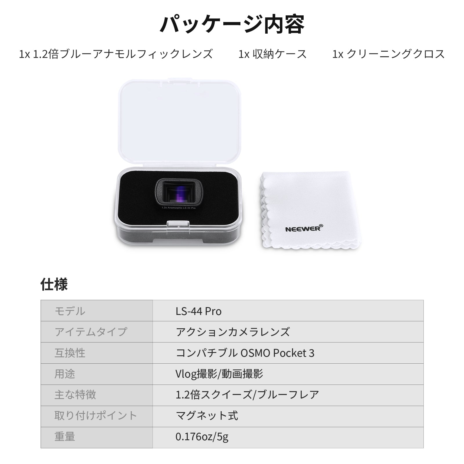 NEEWER LS-44 Pro 1.2X ブルーアナモルフィックレンズ コンパチブル DJI Osmo Pocket 3