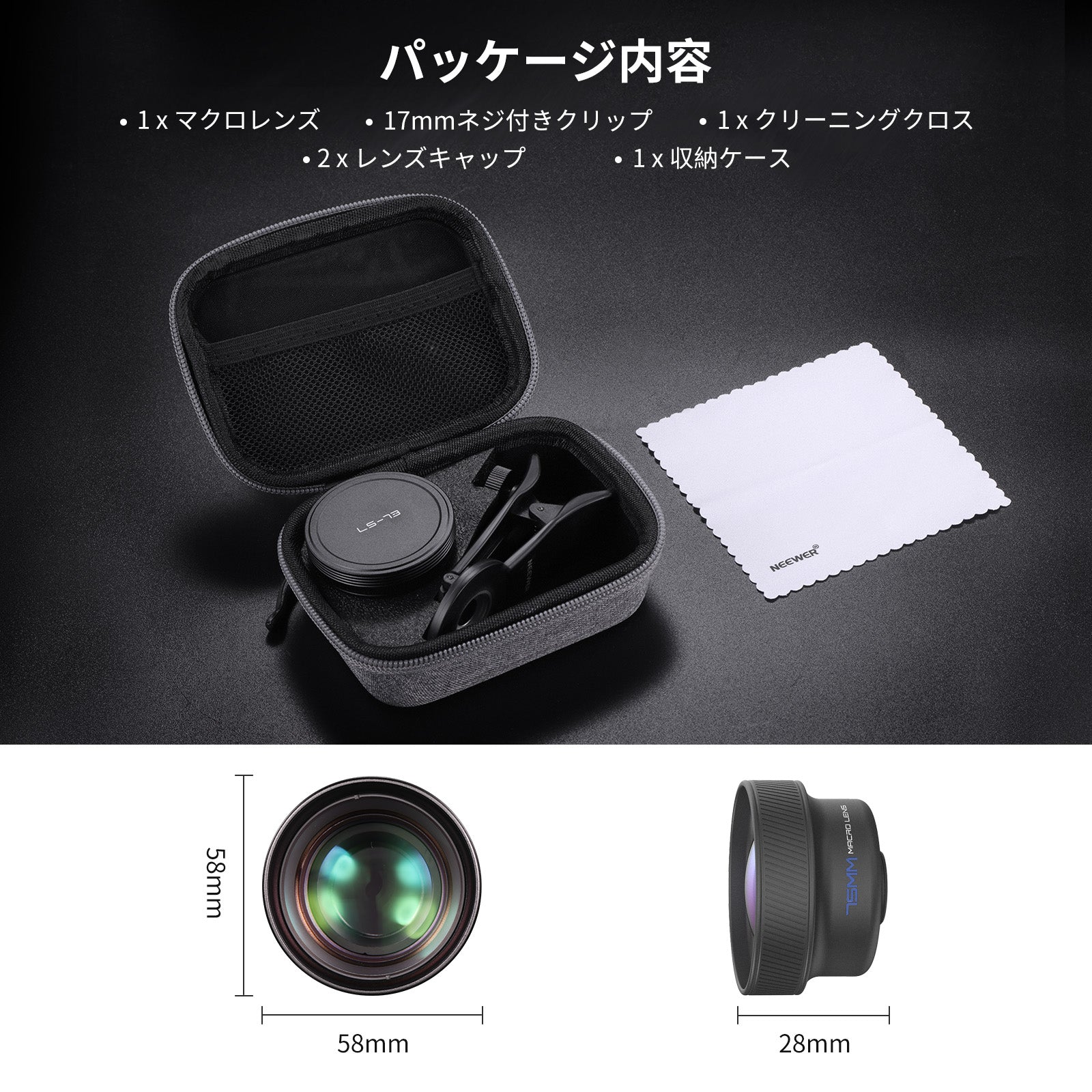 NEEWER LS-73 75mm マクロ スマホレンズ 17mmネジ付きレンズクリップ付き
