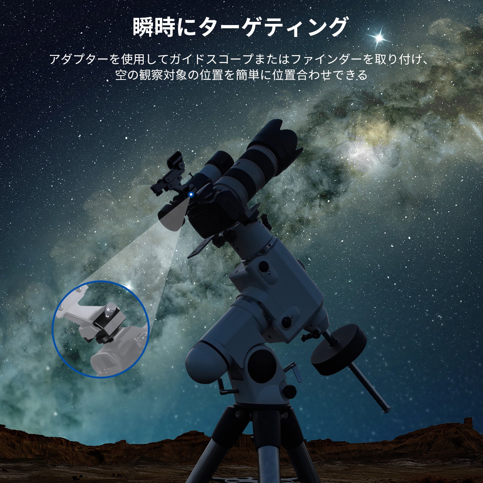 【幅広い用途】レッドドットファインダーやレーザーをカメラに取り付けて、星や暗い星を肉眼で狙うよりも正確かつ効率的に撮影できます。または、望遠鏡のレンズをデスクトップ三脚、卓上スタンド、さらにはライトスタンドに取り付けて、かさばることなく軽量の天体写真キットを拡張できます。