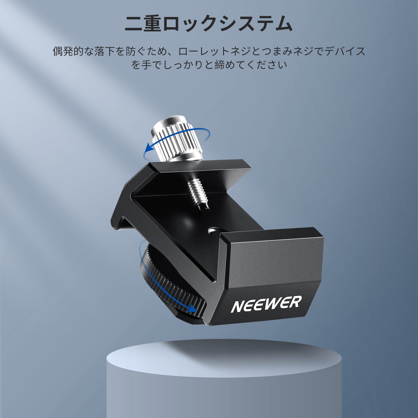 【デュアルロックシステム】ローレットネジとつまみネジが付属しており、手でデバイスをカメラにしっかりとロックできます。ローレットデザインにより摩擦が増し、正確なトルクを実現し、使いやすくなっています。