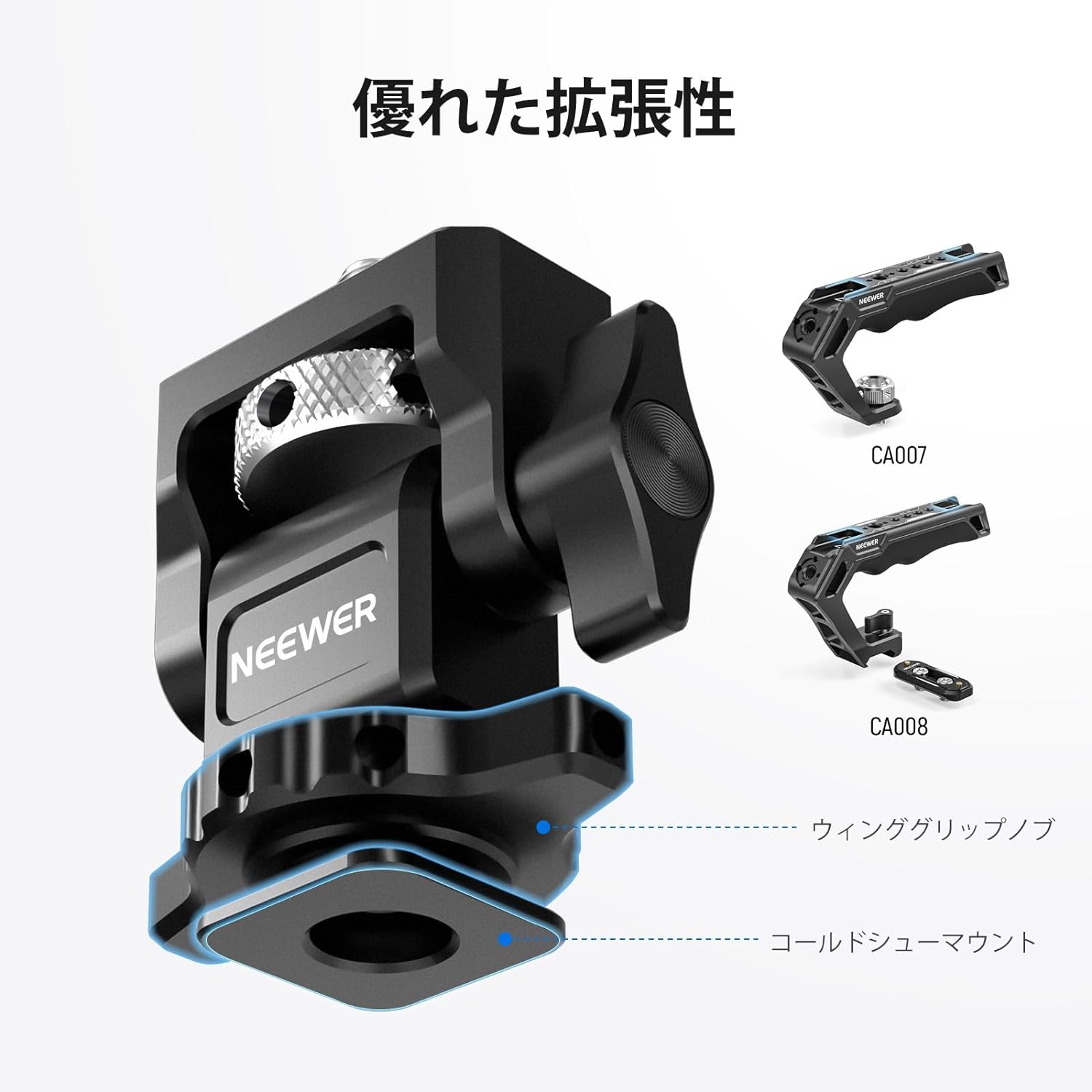 - 【NEEWERからさらに発見】その他のおすすめアイテム:CA016ユニバーサルカメラケージスタビライザー、CA007カメラトップハンドル、CA008 QR NATOクランプ付きトップハンドルカメラグリップ、F100/F400プロ/F500カメラフィールドモニターUA003/UA007/UA022ミニNATOレール